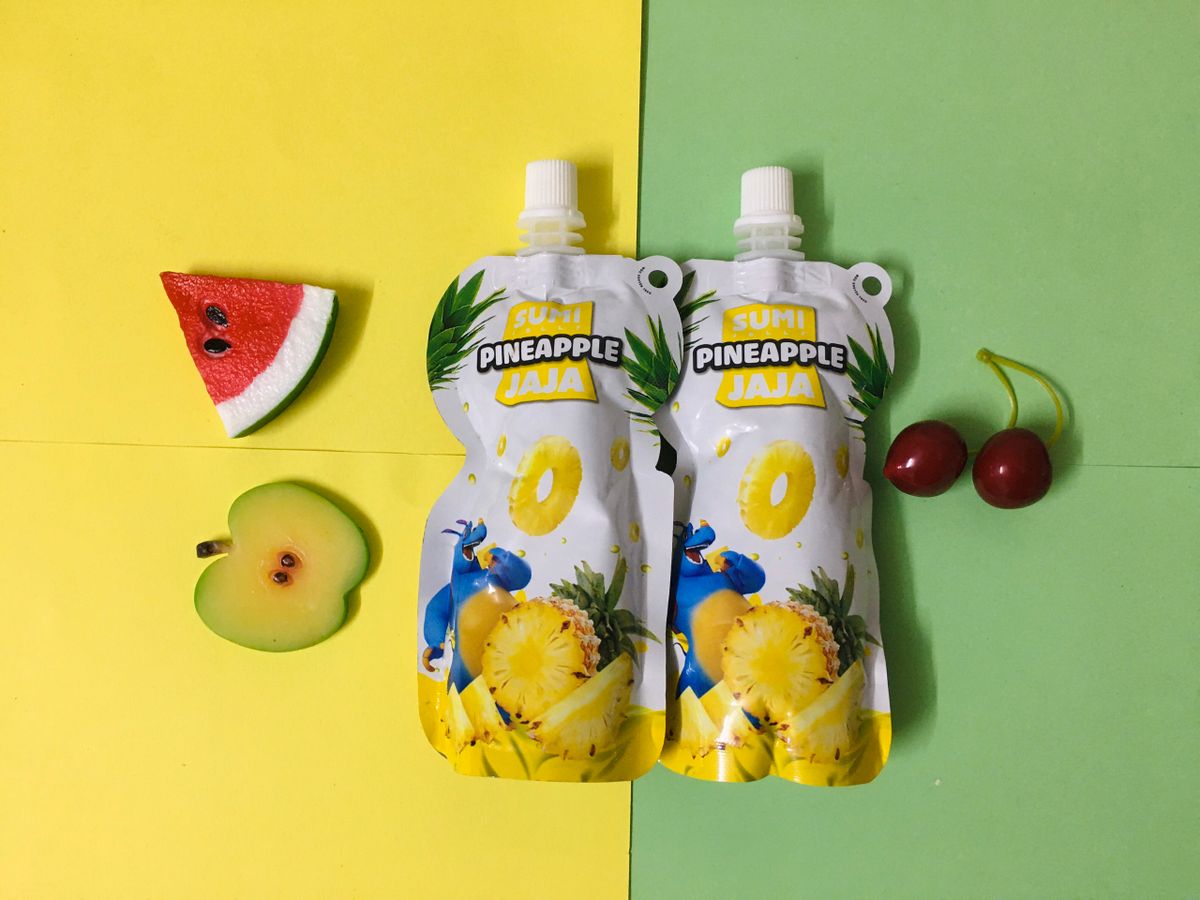 Thạch nha đam túi chai vị dứa với hương vị của trái dứa chín mọng, 1 hộp gồm 12 túi, 1 túi 100g.
