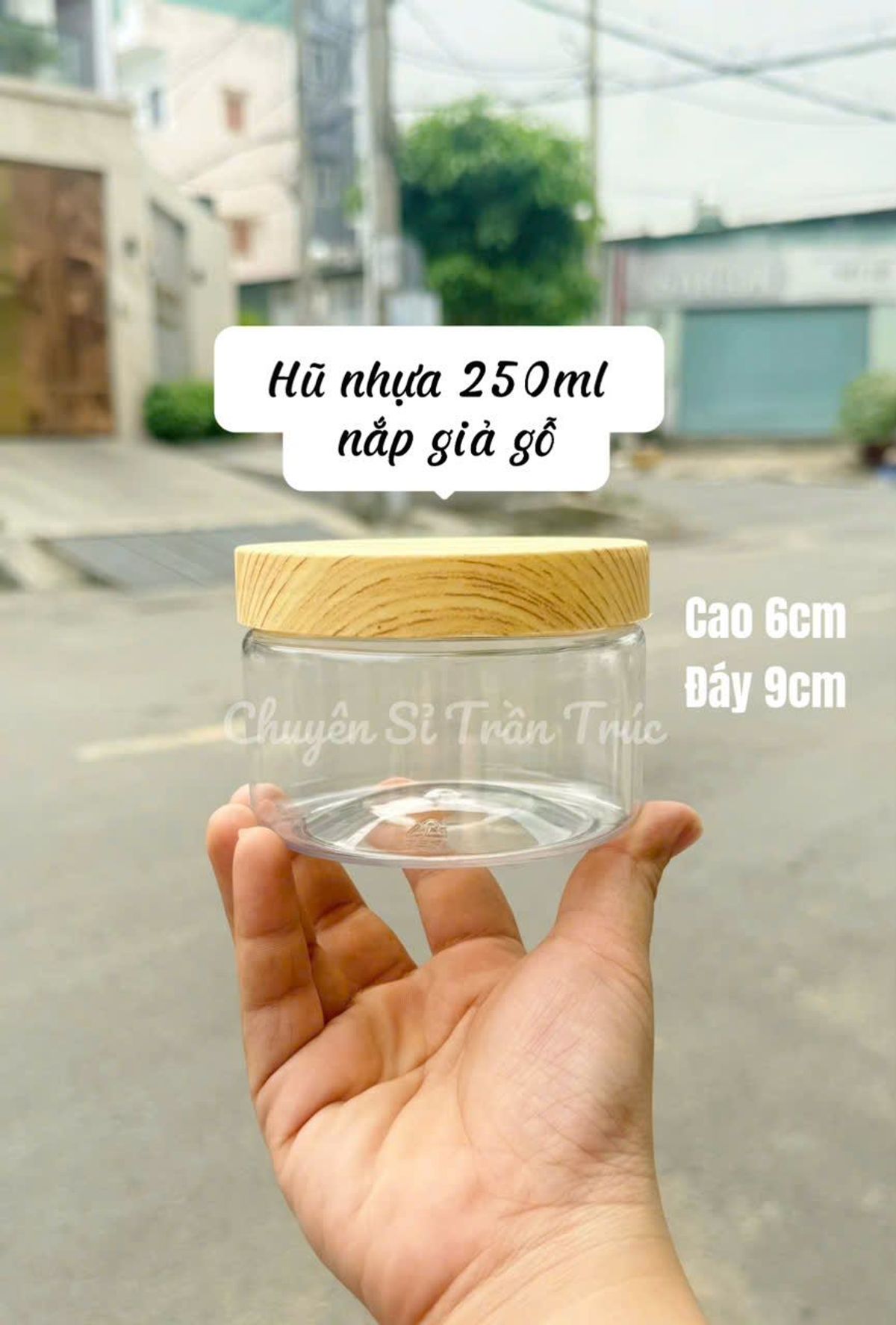 Hũ nhựa 250ml nắp giả gỗ là loại hũ nhựa PET dung tích 250ml đi kèm nắp vặn có lớp phủ giả gỗ (bamboo-look), thường sử dụng để bảo quản, trưng bày hoặc đóng gói sản phẩm trong: