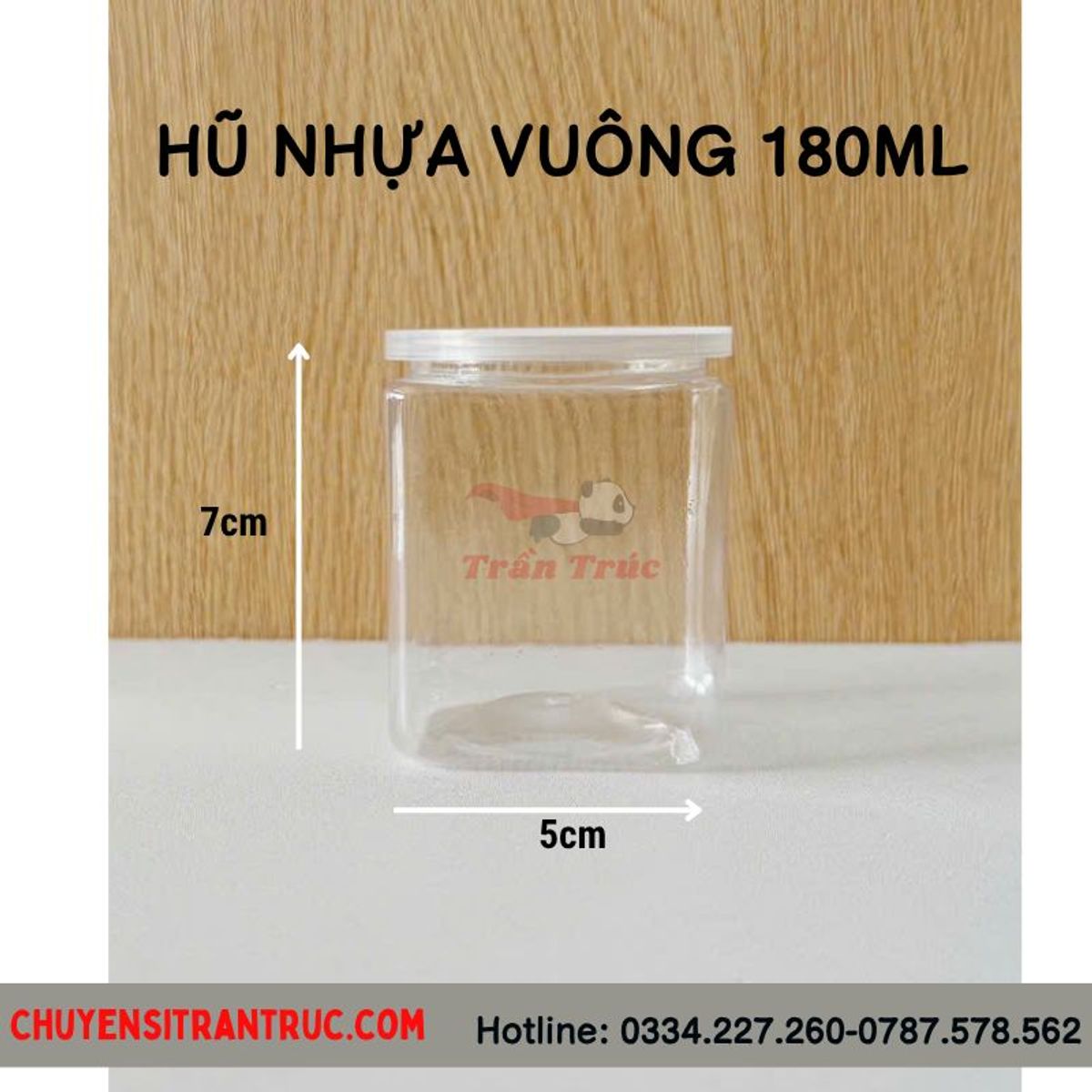 Hũ nhựa vuông 180ml" (square plastic jar 180ml) là một loại bao bì được sử dụng phổ biến để đựng nhiều loại sản phẩm, đặc biệt là thực phẩm và các mặt hàng tiêu dùng khác.