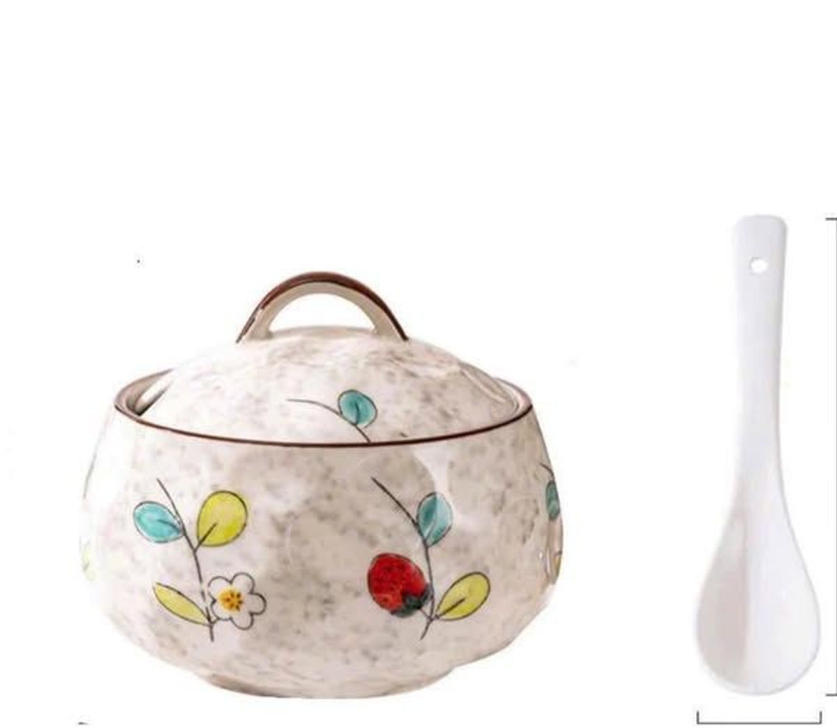 HỦ SỨ TRẮNG ĐỰNG MỠ HÌNH HOA KÈM THÌA 600ML