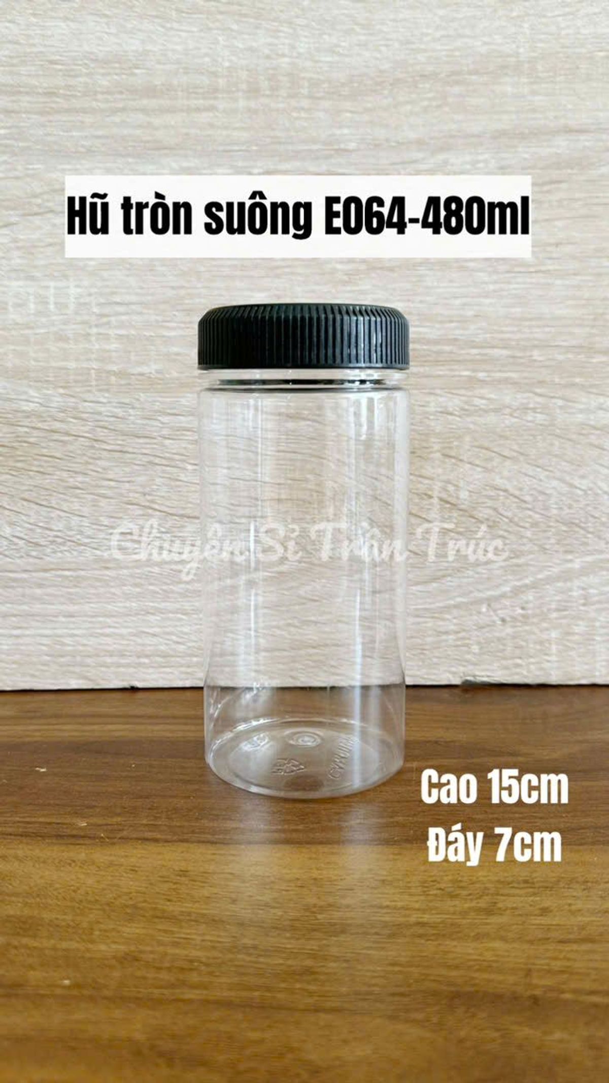 1. Thông số kỹ thuật Thuộc tính Chi tiết Mã sản phẩm E064 Dung tích 480ml Chất liệu Nhựa PET (Polyethylene terephthalate) nguyên sinh Kiểu dáng Tròn, thân suông (thẳng) Màu sắc Trong suốt Loại nắp tương thích Nắp vặn (nhựa ) Đường kính miệng 7cm Chiều cao 15cm Đường kính thân 2. Đặc điểm nổi bậtVới dung tích 480ml, hũ E064 thường được sử dụng để đựng: