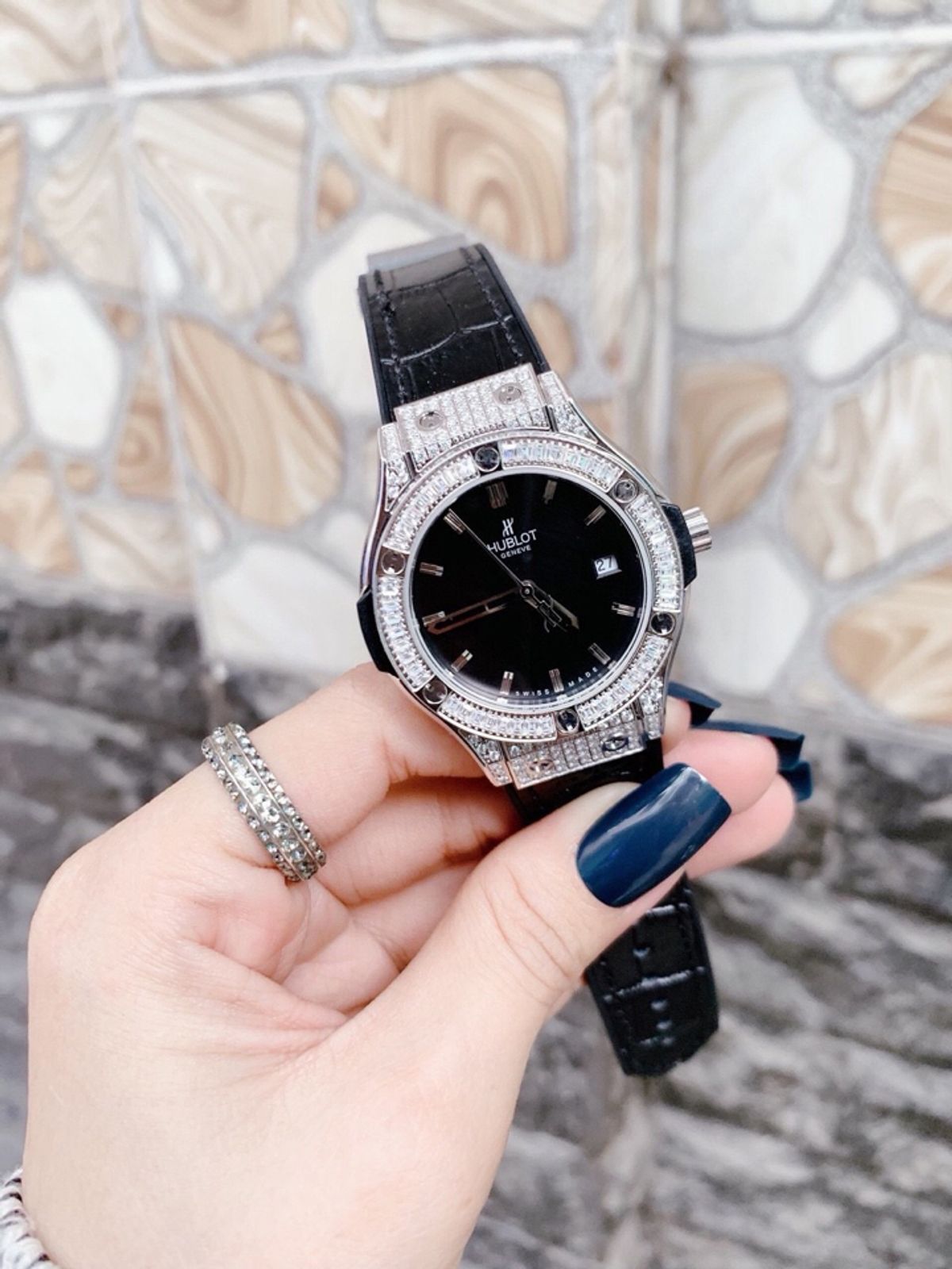 HUBLOTT NỮ BỌC DA ĐEN VỎ TRĂNG giá sỉ/bán buôn