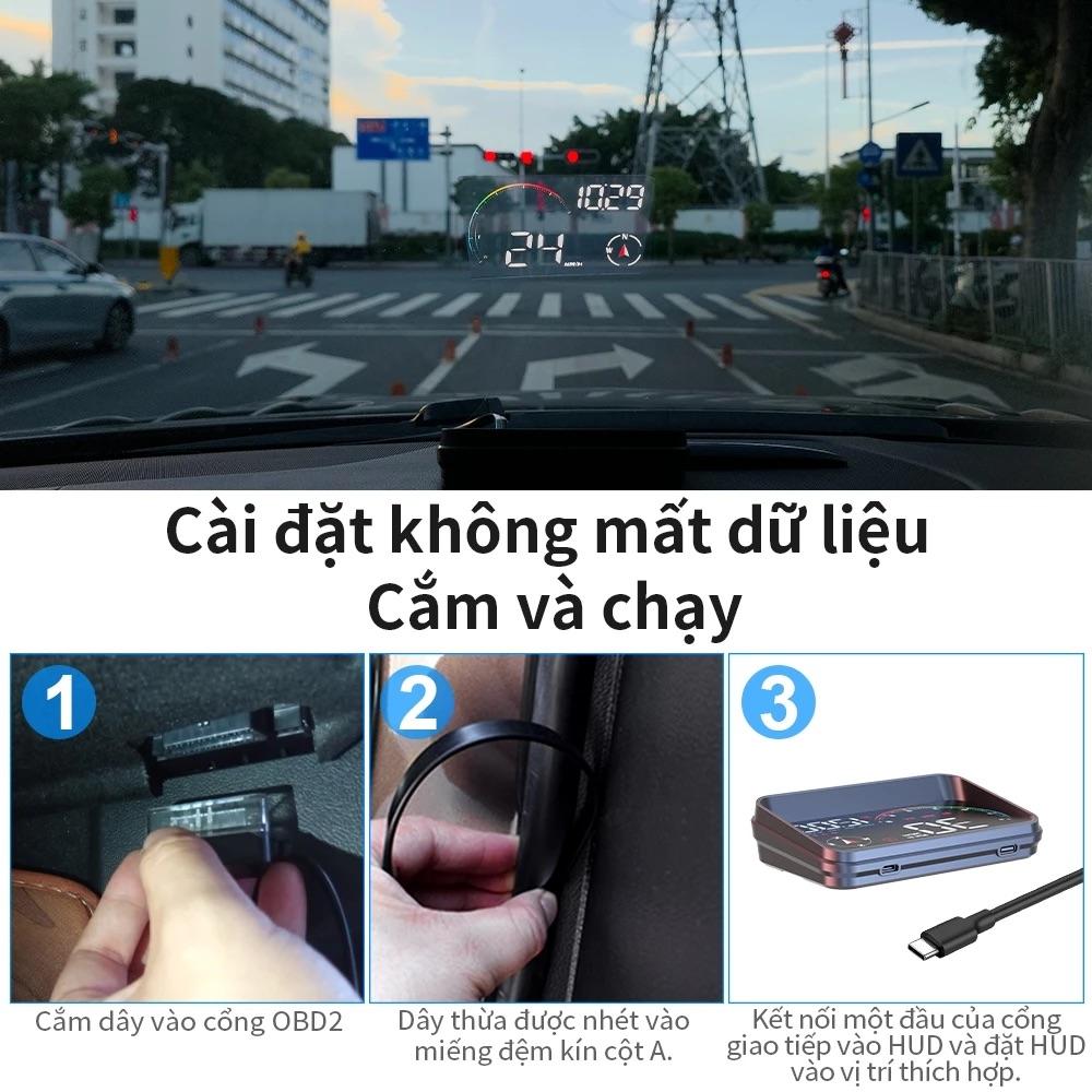 • Lắp đặt đơn giản: thường kèm dây OBD2 + cáp nguồn (USB/adapter), tấm phản quang (nếu cần) và miếng đế chống trượt; Plug-and-Play với các xe hỗ trợ OBD2.