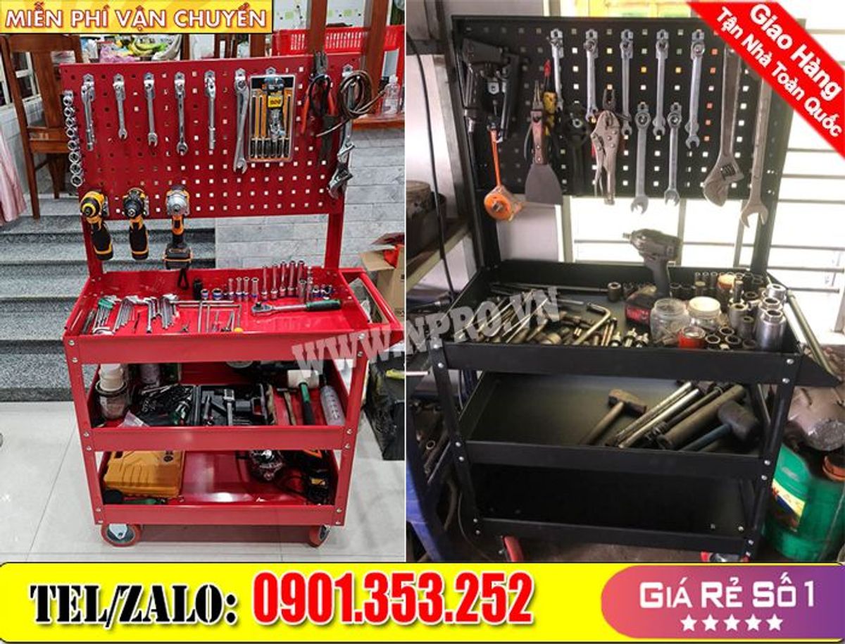 Nội thất garage sửa chữa: Xe đẩy đồ nghề, tủ đồ nghề, bảng treo dụng cụ đồ nghề…