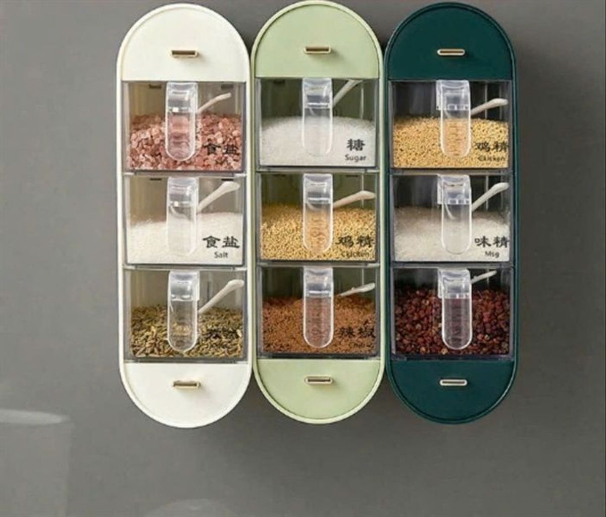 - Bộ hủ có khay đựng giúp cố định gọn gàng từng loại gia vị.