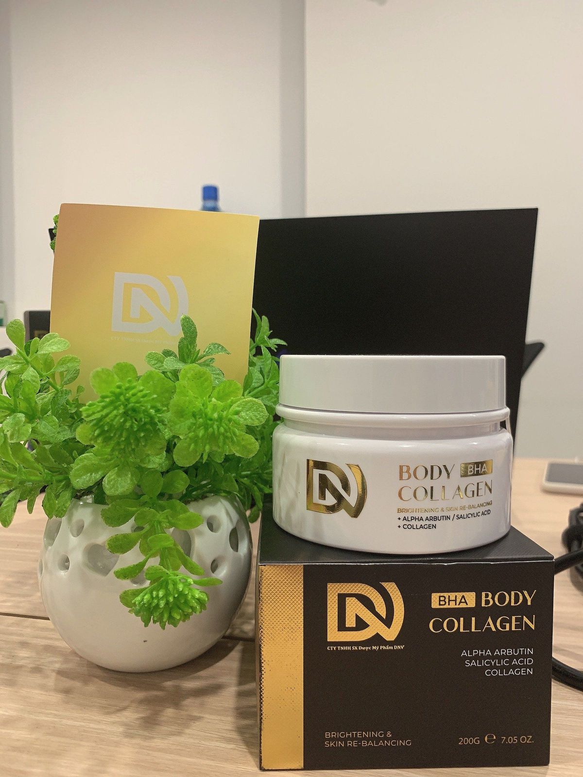 Kem Body Collagen: kết hợp giữa Collagen tươi, bột Ngọc trai, các Protein và các Vitamin nguồn gốc thiên nhiên như: Tinh chất Lô hội (Aloe), Trà xanh (Camellia Sinensis), Rau má (Centella Asiatica), Oliu (Olive), Hoa cây Phỉ (Witch Hazel)...Cùng thành phần dưỡng trắng đặc biệt, giúp nâng Tone da, dưỡng trắng nhanh vô cùng hiệu quả, ngăn chặn sự hình thành các Melanin và ngăn ngừa quá trình tự sản sinh ra các vết hắc tố đen, phục hồi những làn da bị sạm nám.