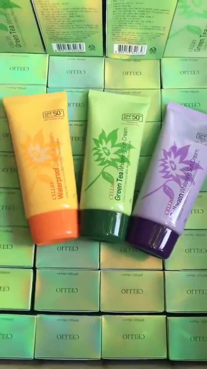 1. Kem chống nắng Cellio Green Tea Whitening Sun Cream (Màu Xanh)