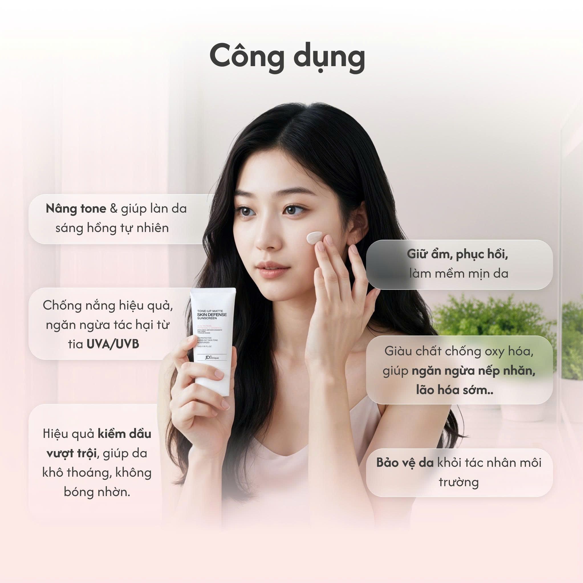 Jdclinique là dòng mỹ phẩm được sản xuất tại Việt Nam, dựa trên công thức từ Hàn Quốc nhằm mang đến những sản phẩm chăm sóc da chất lượng cùng mức giá hợp lý. Kem chống nắng vật lý Jdclinique với chỉ số chống nắng vượt trội SPF 50+ PA+++ giúp bảo vệ làn da dưới nắng trong suốt 12 giờ. Ngoài ra, làn da sau khi thoa sản phẩm sẽ trở nên đều màu, mịn màng và sáng hồng tự nhiên.