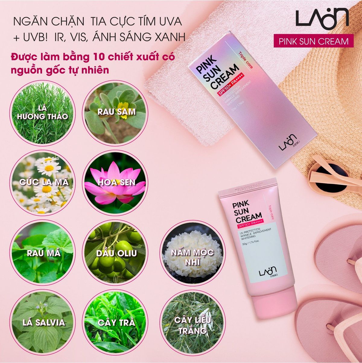 🏵 Tự tin chinh phục nắng hè với KEM CHỐNG NẮNG PHỔ RỘNG 6 MÀNG LỌC PINK SUN CREAM SPF50+/PA++++ thương hiệu Laonmedi tăng cường sức mạnh bảo vệ tối ưu trước tia UVA/UVB và HEV (ánh sáng xanh).