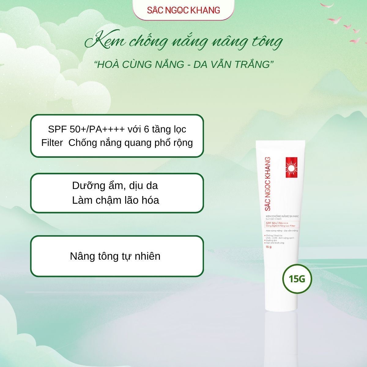 Công nghệ 6 tầng lọc Filter tiên tiến từ nhà Sắc Ngọc Khang cho phổ chống nắng cực rộng, có thể chống được các bức xạ từ bước sóng 280 – 500nm. Đồng nghĩa với việc làn da sẽ được bảo vệ tối đa khỏi tia UVA1 – UVA2 – UVB và cả ánh sáng xanh phát ra từ các màn hình thiết bị điện tử, đèn LED.