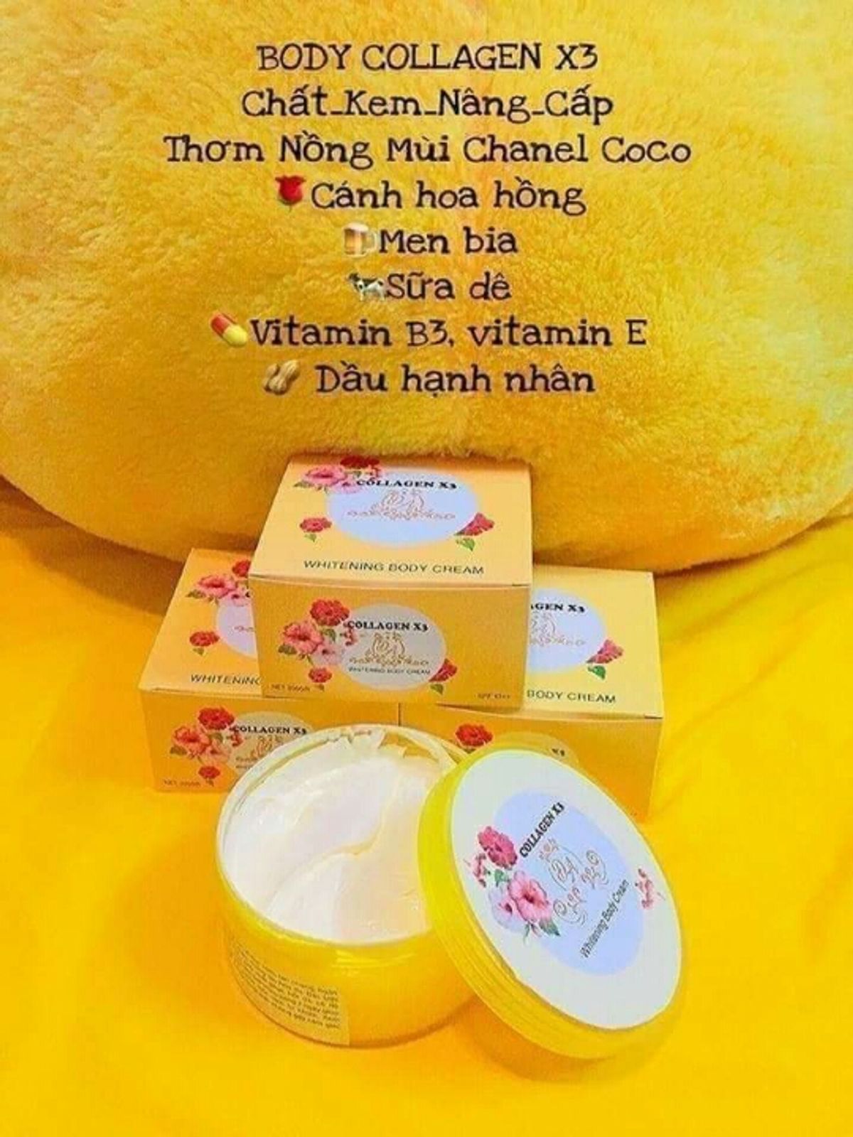 BODY COLAGEN X3 ƯU ĐIỂM VƯỢT TRỘI : Hàng e dùng em bán nên khách cứ yên tâm ạ Thấm nhanh sau 5s Không rít không bết Không lộ vân kem Không khô da,giữ ẩm cho da Không bắt nắng Không hao mòn da Trắng nhanh sau 7 ngày sử dụng