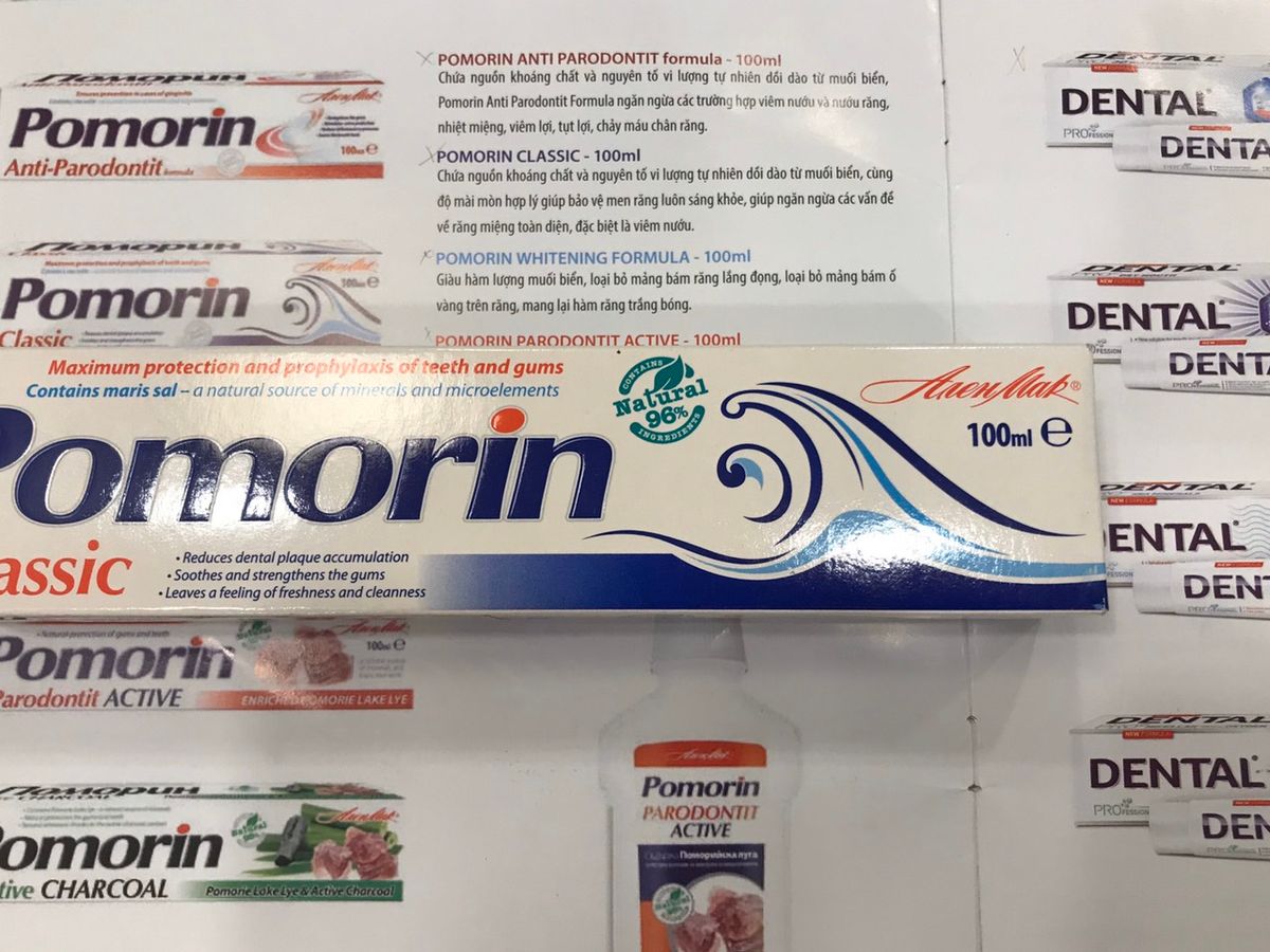 Thương hiệu Pomorin là một trong những loại kem đánh răng được biết đến rộng rãi nhất ở Bulgaria(châu âu ) , được phát triển đặc biệt để giải quyết các vấn đề cụ thể của khoang miệng của từng đối tượng khác nhau .
