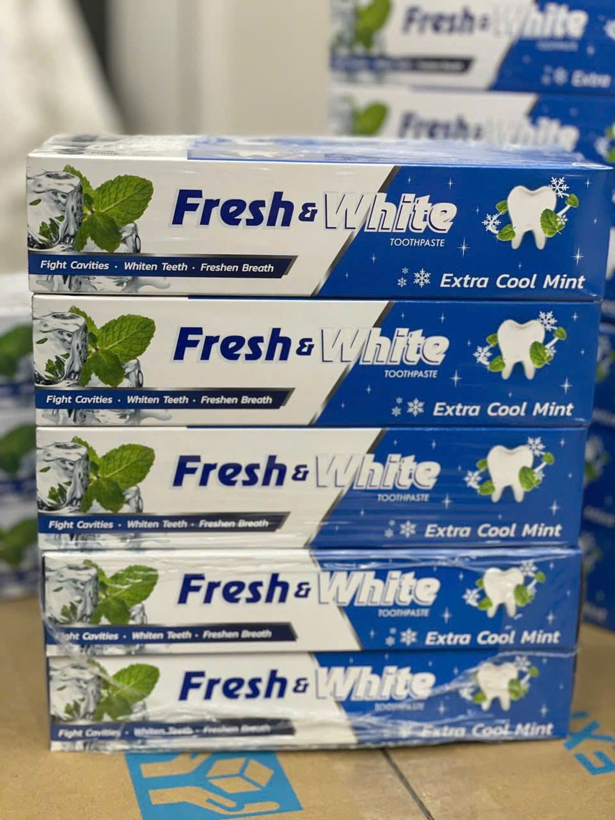 Dòng sản phẩm kem đánh răng Cao cấp Fresh & White giúp răng trắng sạch hoàn toàn và cho cả gia đình bạn sự tự tin với hơi thở thơm mát sảng khoái, công thức chứa lớp bảo vệ Cal-Shield với tính năng: Calcium & 2-Fluoride tăng khả năng ngừa sâu răng, duy trì men răng rắn chắc. WhiteMax cho răng trắng hơn, sáng bóng hơn. Hương Bạc hà cho hơi thở thơm mát sảng khoái.