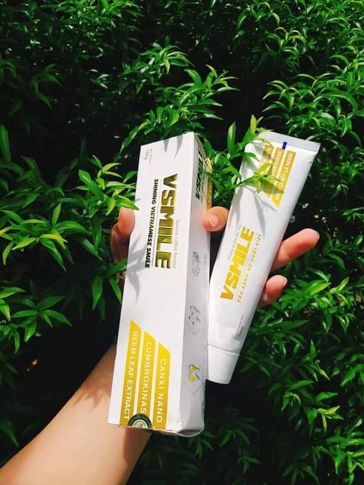 • Phủ một lượng kem đánh răng vsmile vừa đủ trên bàn chải, đánh toàn bộ răng trong khoảng 2 phút
