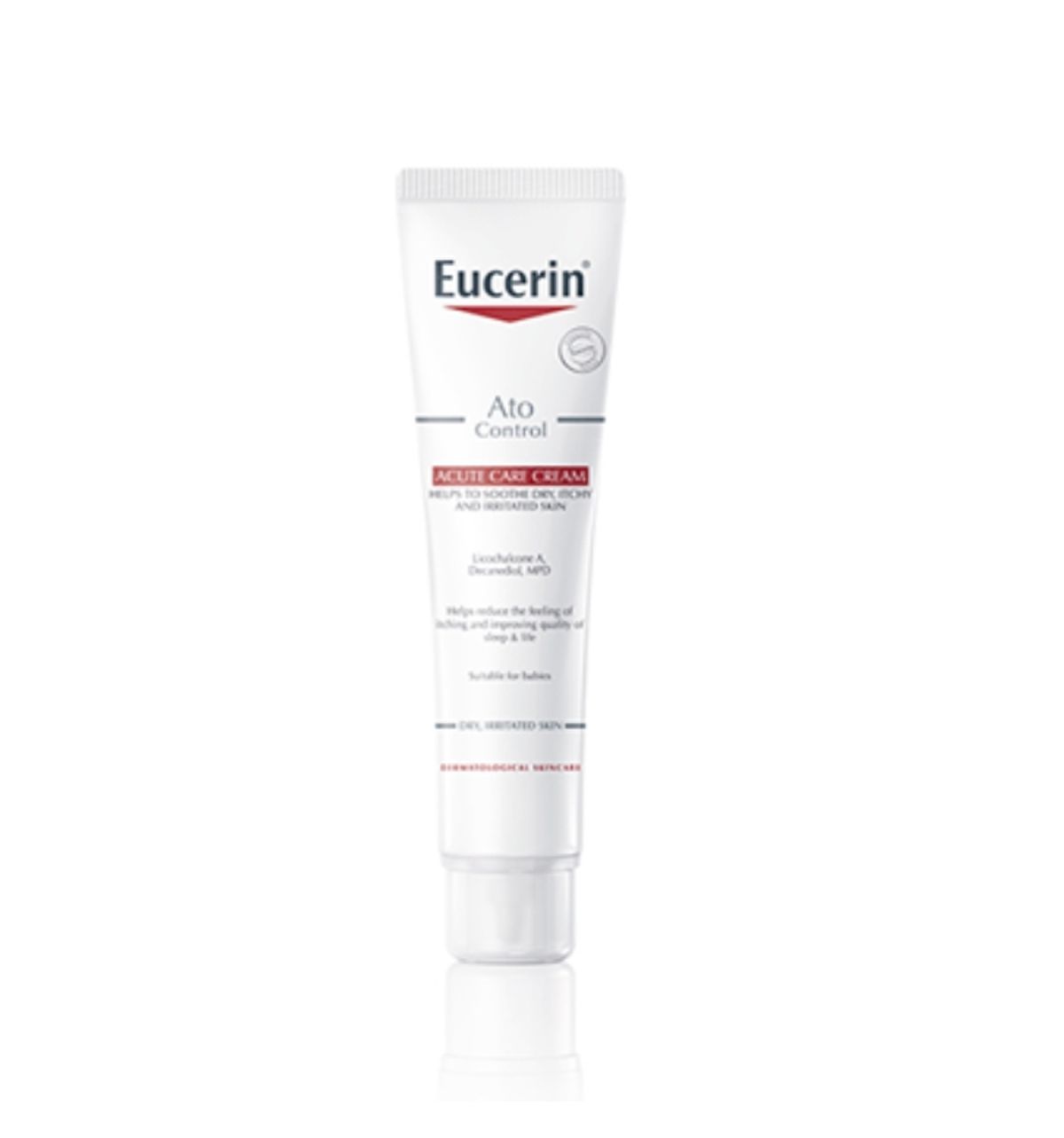 Thoa thường xuyên lên vùng da kích ứng để đạt được hiệu quả tốt nhất với làn da dễ chịu và êm ái. Kem dưỡng Eucerin AtopiControl Acute Care Cream là sản phẩm chứa các hợp chất gồm các acid béo Omega-6 giúp tái tạo làn da (Tinh dầu hoa Dạ Anh Thảo và Tinh dầu Hạt Nho), Licochalcone A giúp da dễ chịu (chiết xuất từ rễ cây cam thảo), Decandiol diệt khuẩn và Menthoxypropanediol giảm ngứa mang đến cảm giác tươi mát cho da. Các kiểm nghiệm lâm sàng trên da cho thấy kem phù hợp dùng cho cả người lớn, trẻ em và trẻ sơ sinh trên 3 tháng tuổi.