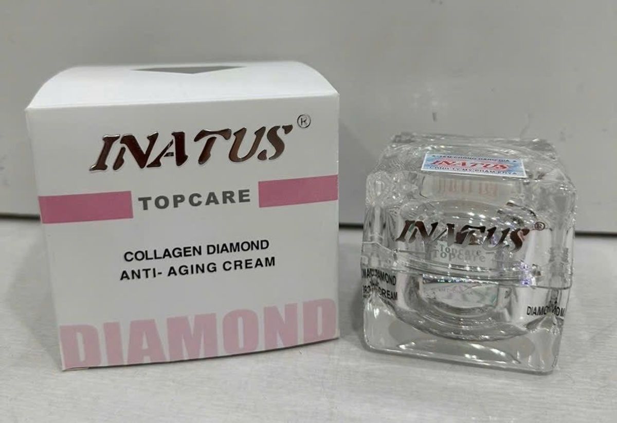 Kem dưỡng trắng da ngừa nám INATUS Kim Cương (20G)Kem Dưỡng Trắng Da Cao Cấp INATUS (9in1) COLLAGEN KIM CƯƠNG với tính năng đột phá từ collagen và khoáng sản quí hiếm Kim Cương cùng các loại tinh dầu,chiết xuất từ thực vật thiên nhiên INATUS Collagen kim cương phát huy hết tính năng 9 công dụng trong 1 sản phẩm như: 1. Giảm nhờn và se khít lỗ chân lông,ngăn ngừa sự hình thành và phát triển của mụn cám,mụn đầu đen. 2. Giảm vết nhăn li ti và nếp nhăn sâu. 3.Khắc phục vết nám lâu năm, nám mới phát, tăng cường độ đàn hồi cho da, giúp da khô ráp,sần sùi trở nên mịn màng và trẻ trung. 4. Kem thẩm thấu vào làn da,ngăn chặn quá trình lão hoá rất hữu hiệu 5. Phục hồi da, làm căng da mặt, tái tạo kích thích phát triển tế bào mới. 6.Loại bỏ nhanh tế bào chết, sản sinh tế bào non cho da, da xạm trở nên trắng hồng khỏe mạnh và rạng rỡ. 7. Kem hỗ trợ duy trì sự trẻ lâu, mờ các vết thâm, đồi mồi trên da, giúp da tươi sáng lưu mãi nét thanh xuân. 8.Dưỡng ẩm giúp làm giảm vết nhăn . Da trở nên tươi trẻ ,mang lại làn da mịn màng và săn chắc hơn. 9.Tăng cường khả năng làm trắng và độ chống nắng tự nhiên,tạo cảm giác dễ chịu ,giúp da mềm mại quyến rũ duy trì lâu dài cho dù bạn có ngưng sử dụng.