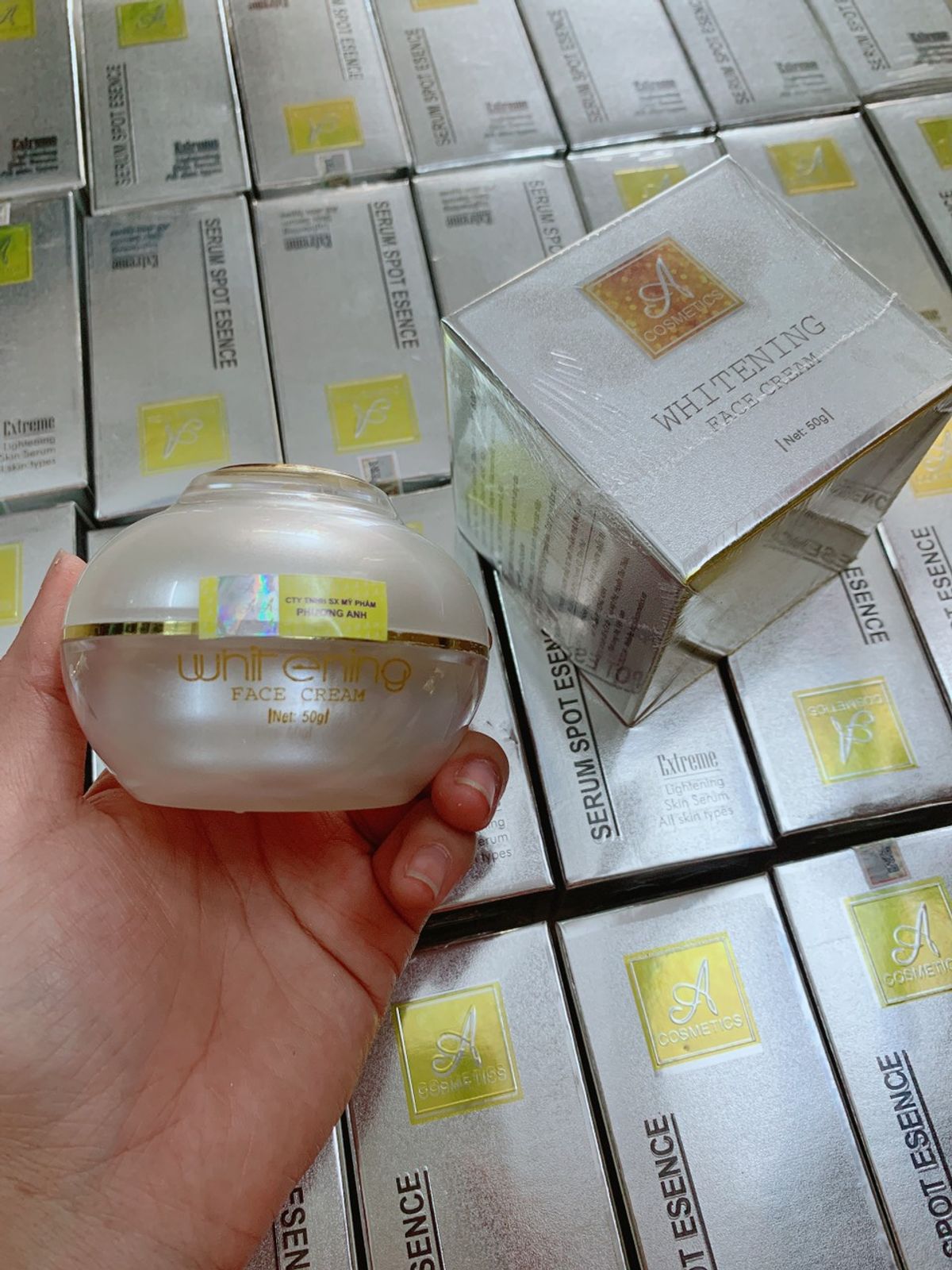 Kem Face Pháp của Mỹ Phẩm Phương Anh – A Cosmetics 2020 Kem dưỡng trắng FACE PHÁP của A Cosmetics là gì nè ! Kem dưỡng trắng da Face Pháp 2020 là dạng chất kem nén nén thế hệ mới, giúp nuôi dưỡng làn da một cách hiệu quả và an toàn, không sử dụng chất tẩy da, không gây bào mòn khiến da mỏng và bị tổn thương. Kem Face Pháp có công dụng sau 3 bước : Bước 1 : Kem dưỡng trắng da mặt FACE PHÁP tăng cường và bổ sung collagen cần thiết cho da.Tác dụng sau 3-5 ngày. Bước 2 : Sẽ mang lại cho bạn một làn da trắng đẹp, mịn màng, không tì vết. Bước 3 : Giúp bạn xóa mờ các vết nám lâu năm, ngăn ngừa nám mới phát triển, loại bỏ các sắc tố đen nám, tàn nhang, nuôi dưỡng tế bào mới, chống nhăn và giữ ẩm, giúp bạn có 1 làn da luôn tươi trẻ & mịn màng. Kem Face Pháp được tạo thành từ một số nguyên liệu: - Khoáng chất tự nhiên giúp trắng da - Collagen giúp sản sinh nhiều tế bào da mới, loại bỏ những làn da sần sùi. - Vaseline sáp dưỡng dùng để cung cấp độ ẩm cho làn da. - Allantoin: Tái tạo làn da bị hư tổn, giữ ẩm và ngăn ngừa tình trạng lão hóa - Vitamin E giúp dưỡng ẩm, làm mềm da, tạo sự săn chắc cho da - Niacinamide đây là dưỡng chất vàng, giúp se khít lỗ chân lông, làm đều màu da, giúp da trẻ trung hơn. - Stearic Acid là một dạng axít béo giúp dưỡng ẩm, đặc trị các loại mụn, kháng khuẩn và kháng viêm hiệu quả. - Thành phần lúa mạch giúp kháng nấm và có thể hạn chế ung thư da. - Nước tinh khiết làm chất kem mềm hơn giúp dễ sử dụng. - Ngoài ra, kem dưỡng trắng da face pháp còn có thể ngăn ngừa được các tia khúc xạ ánh sáng, tia UV của ánh nắng mặt trời, giúp da ít hấp thụ hơn những tia độc hại này . Trên thị trường ngày càng xuất hiện nhiều sản phẩm nhái , giả , nhằm cạnh tranh và giảm uy tín thương hiệu của Mỹ Phẩm Phương Anh. Quý khách mua hàng tại là an tâm nhất vì cam kết 100% sản phẩm của bán ra luôn và chắc chắn kiểm tra hàng giả qua phần mềm Icheck qua QR CODE. HƯỚNG DẪN SỬ DỤNG : 1. Vệ sinh da mặt thật sạch trước khi thoa kem , có thể kết hợp với DETOX BỌT BIỂN và SỮA RỬA MẶT TRÀ XANH để giúp làn da luôn khỏe mạnh. Việc kết hợp với 2 sản phẩm Detox và Sữa rửa mặt trà xanh sẽ giúp Face Pháp 2020 phát huy được hiệu quả của mình. 2. Chấm ít kem vào ngón tay ( tầm hạt đậu) thoa đều khắp mặt 1 ngày/ 2 lần sáng và tối. Nhưng để thực sự đạt được hiệu quả cao thì tốt nhất chỉ nên dùng vào ban đêm, thời điểm chuẩn bị đi ngủ. Vì khi đó, da bạn sẽ được phục hồi và hấp thụ kem một cách nhanh chóng. 3. Bạn có thể dùng làm kem nền để make up khi đi tiệc hoặc các hoạt động ngoài trời. #kem_trị_nám #kemtrịnám #trắngdamặt #trắng_da_mặt #kemtrịmụn #kem_trị_mụn #kemmekup #kem_mekup #kemfacephapacosmetics #kem_face_phap_acosmetics #kemduongtrangda #kem_duong_trang_da