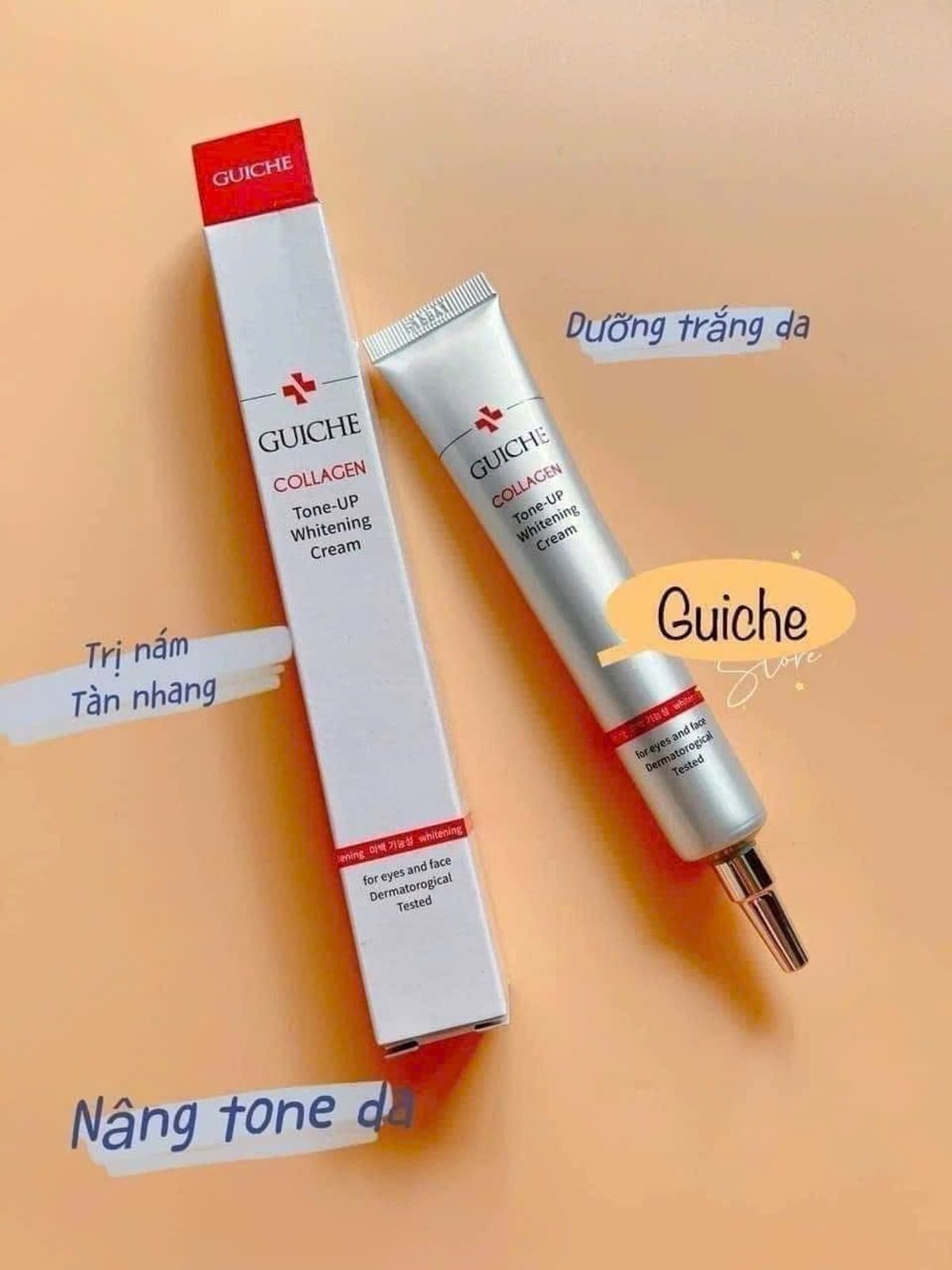 Kem nám GUICHE CREAM(KEM ĐIỀU TRỊ THÂM NÁM , TÀN NHANG VÀ LÀM TRẮNG DA)Xuất xứ: Hàn quốcDung tích: 35 mlTuýp kem thần thánh xua tan nỗi lo của phái đẹp.⚘️GUICHE CREAM có chứng nhận của KFDA ( cục quản lý thực phẩm & dược phẩm Hàn Quốc).Có tác dụng :Làm trắng sáng da.Thấm sâu vào trong da, cho làn da mềm mịn.Loại bỏ các vết thâm nám, tàn nhang lâu năm.⚘️GUICHE CREAM được sản xuất hoàn từ thiên nhiên, không chứa chất kích ứng, không gây bào mòn da, không tác dụng phụ, đảm bảo an toàn.⚘️GUICHE CREAM giúp loại bỏ các tế bào chết chứa Melamin gây sạm da, nám da...⚘️GUICHE CREAM ngăn ngừa và điều trị nám, tàng nhang, dưỡng ẩm và nuôi dưỡng làn da...⚘️GUICHE CREAM làm trắng da, đẩy lùi các dấu hiệu lão hóa. Cải thiện kết cấu da, đánh bật các vết nám, tàn nhang tiềm ẩn sâu bên trong cho làn da sáng khỏe tự nhiên.Chỉ cần chấm 1 ít kem , sự kì diệu sẽ đến ...những đốm tàn nhang và nám sẽ mờ dần nhé các chê.P8493