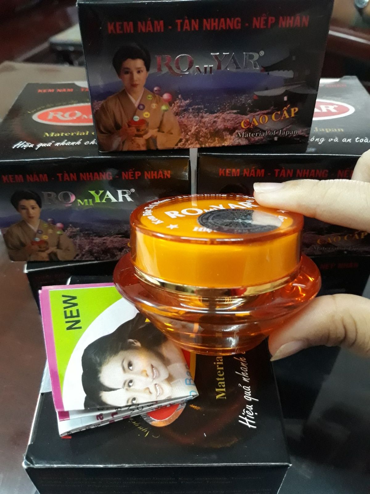 Romiyar kem nám tàn nhang nếp nhăn Với tinh chất Nha đam, bột Ngọc trai và sữa Ong chúa…làm giảm sắc tố tối màu da, trị nhanh và nám lâu năm, nám mới phát, tàn nhang, đồi mồi. Đồng thời giữ ẩm giúp cho da khô mốc, sần sùi trở nên sáng mịn, trắng hồng tự nhiên (không ăn nắng) đem lại cho bạn làn da trắng sáng
