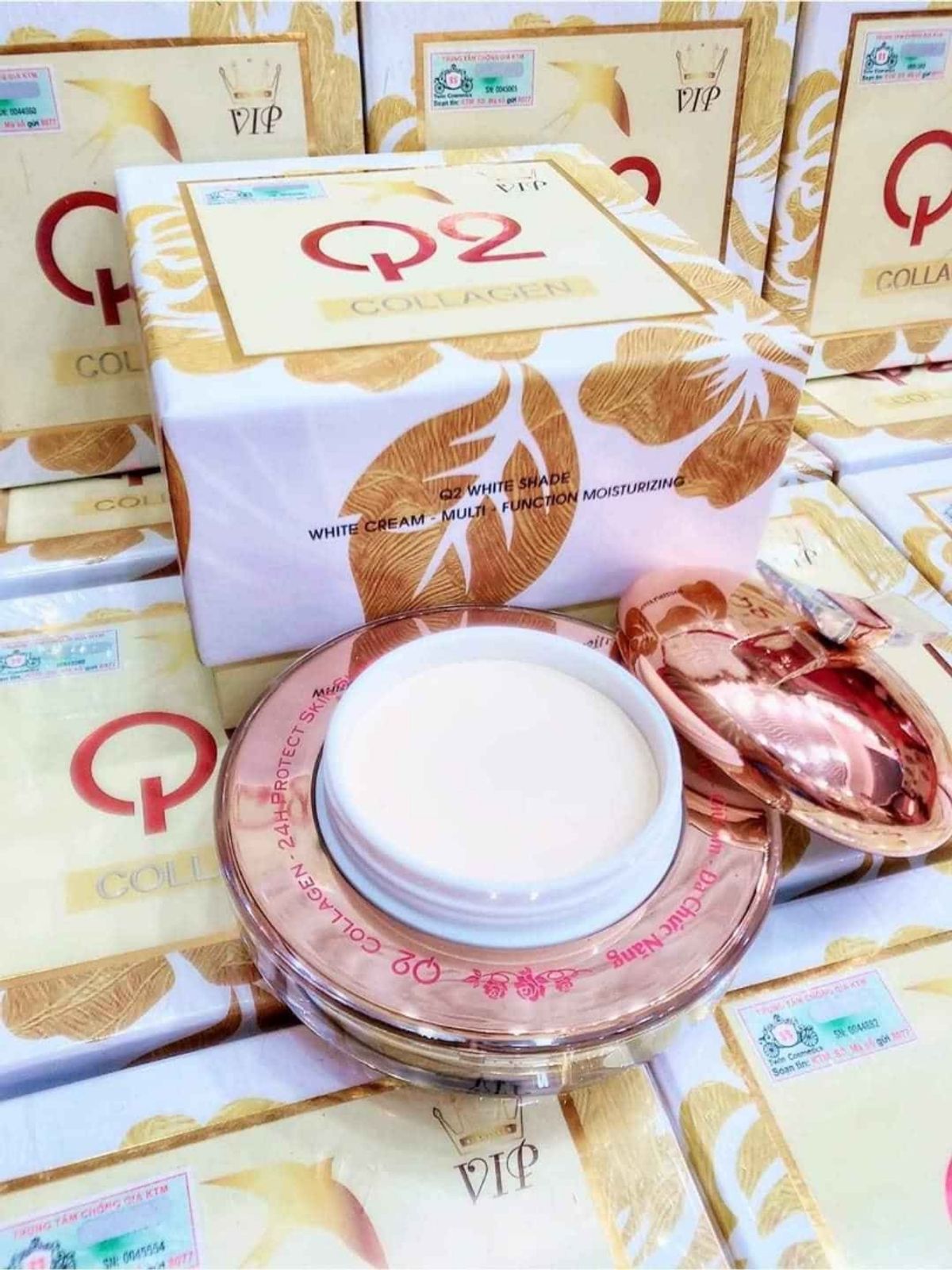 Face vip chất kem quá vip luôn khách ạh, thoa đến đâu kem thấm hít đến đấy nhé!FACE Q2 VIP COLLAGEN CAO CẤP• Giá: 720k•Hộp 50gr/Dùng được khoảng 8-9tháng Là kem chuyên dưỡng trắng hồng da chống lão hoá !! Xài cực êm dùng được cho mọi loại da kể cả da mỏng, yếu . Kết hợp nhiều dưỡng chất collgen và thảo dược , giúp cải thiện và nuôi dưỡng làn da trắng sáng mịn màngCân bằng độ ẩm cho daXoá mờ vết thâm,se khít lỗ chân lông,ngăn chặn tia cực tím UVA/UVB.Giúp tái tạo,ngăn ngừa lão hoá da và mang lại làn da trắng sáng,khoẻ tự nhiên,không ăn nắng.Kết hợp cùng với Serum để mang lại hiệu quả hơn nữa.Hàng có sẵn