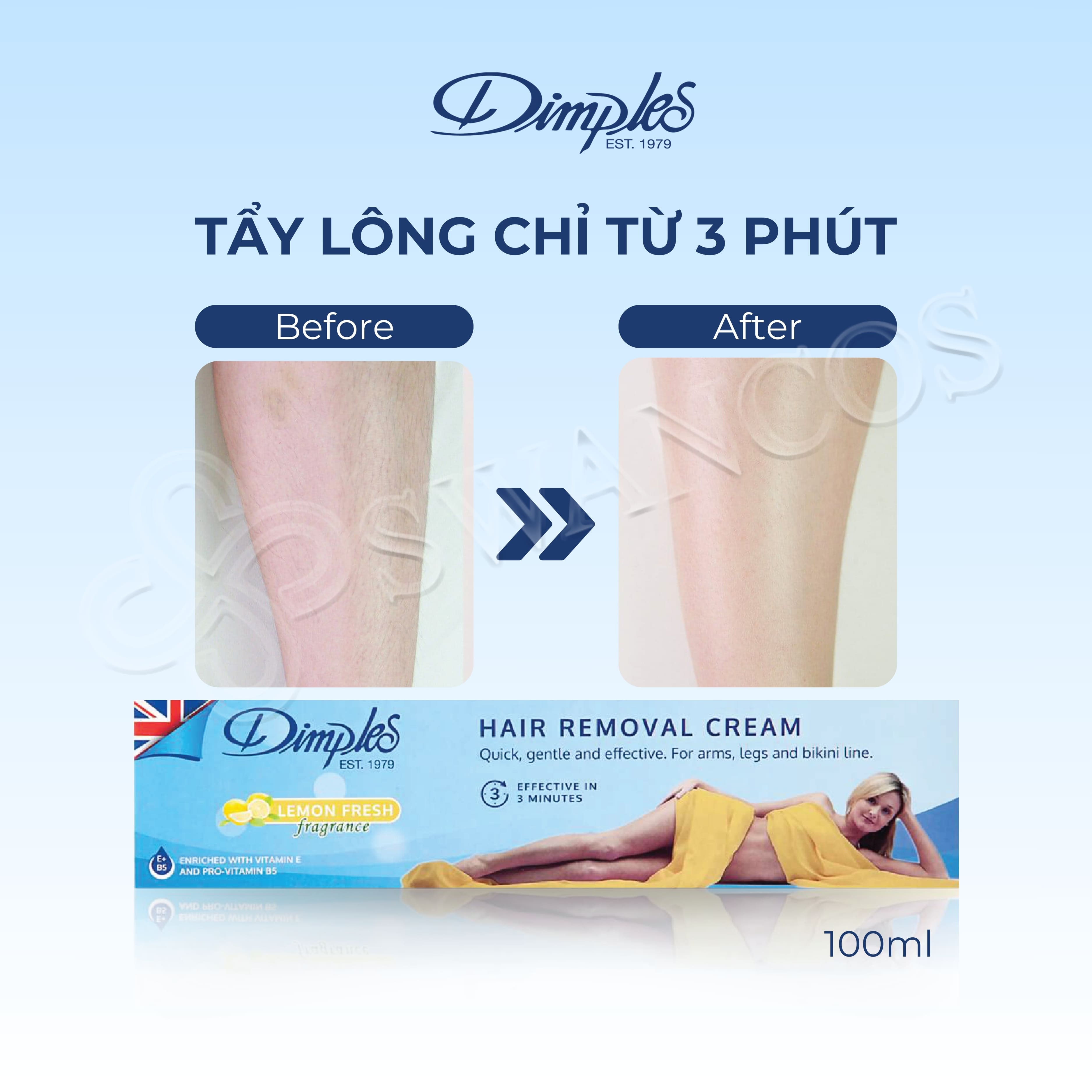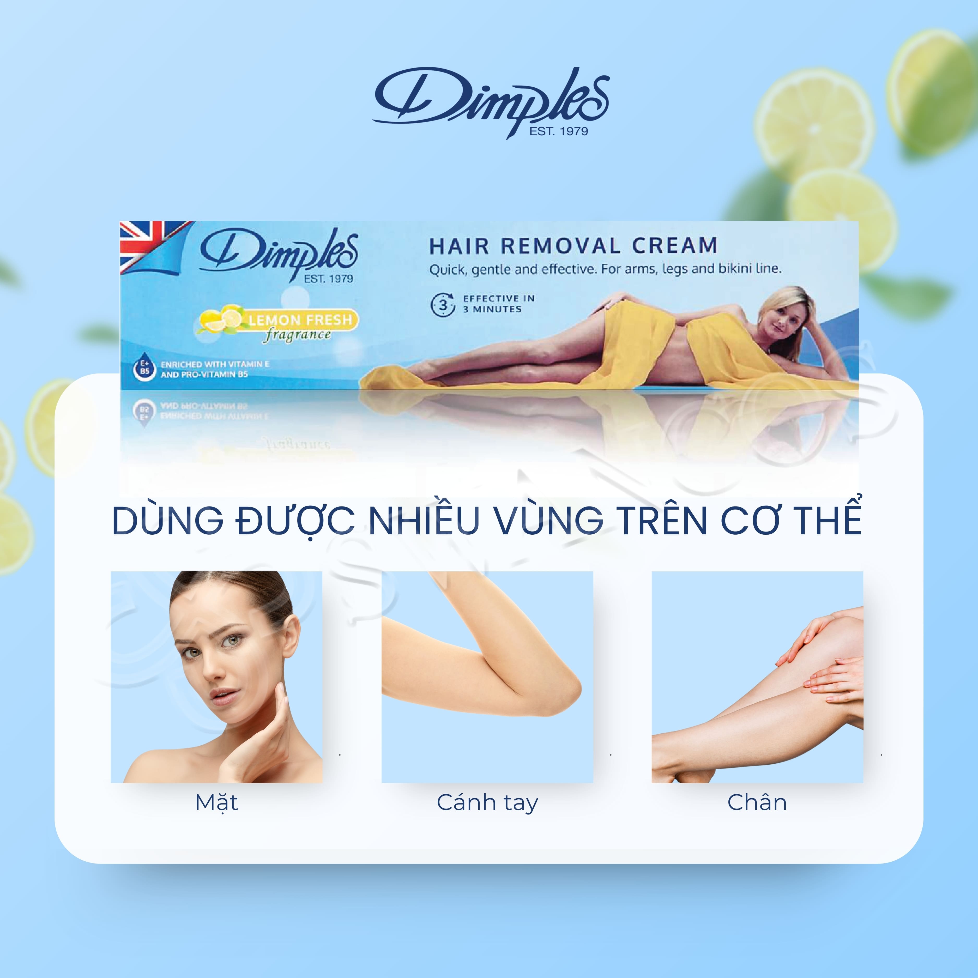 Kem tẩy lông Dimples hương chanh 100ml dùng cho chân tay nách vùng kín bikini không đau an toàn cho da nhạy cảm