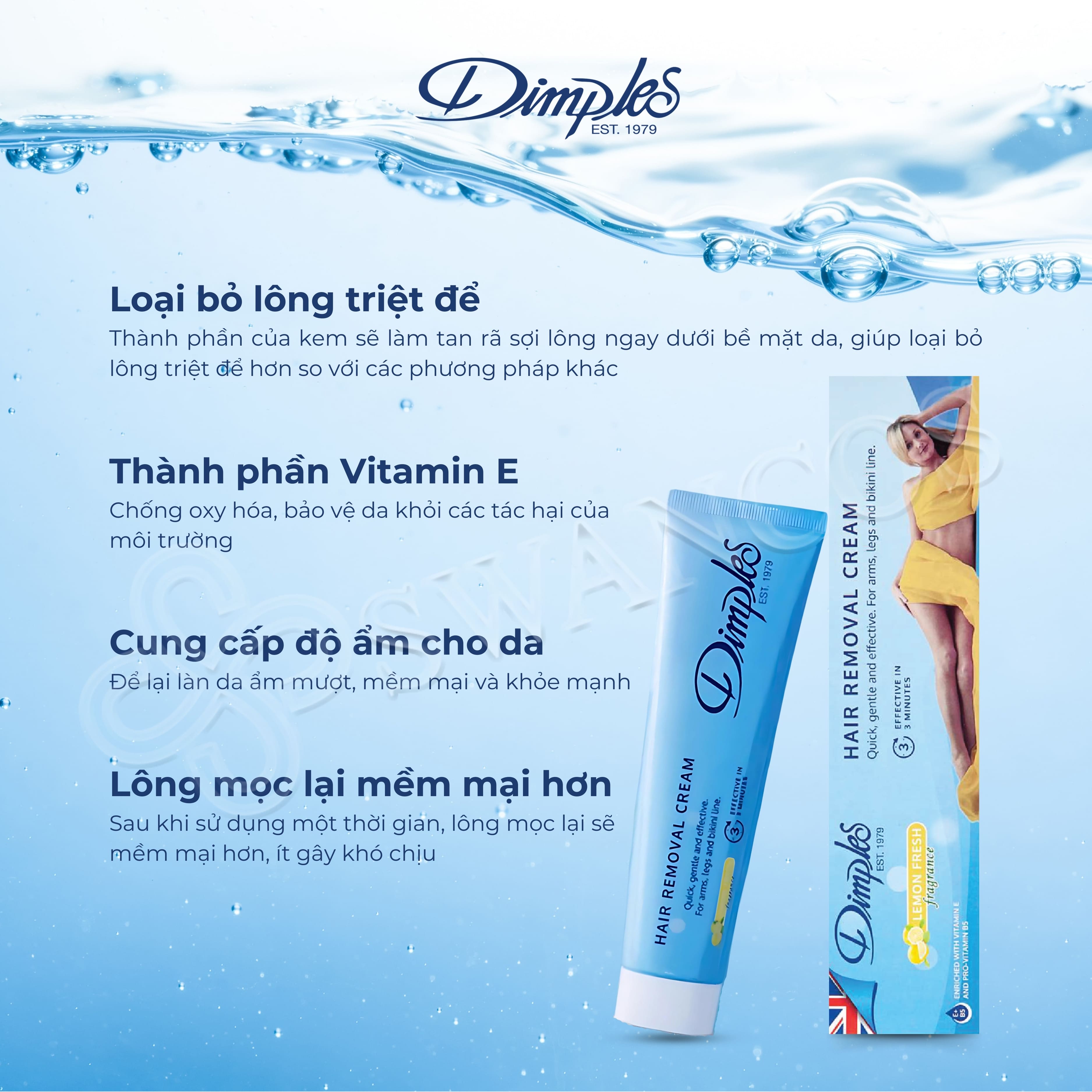 - Tên sản phẩm: Dimples Hair Removal Cream – Lemon Fresh