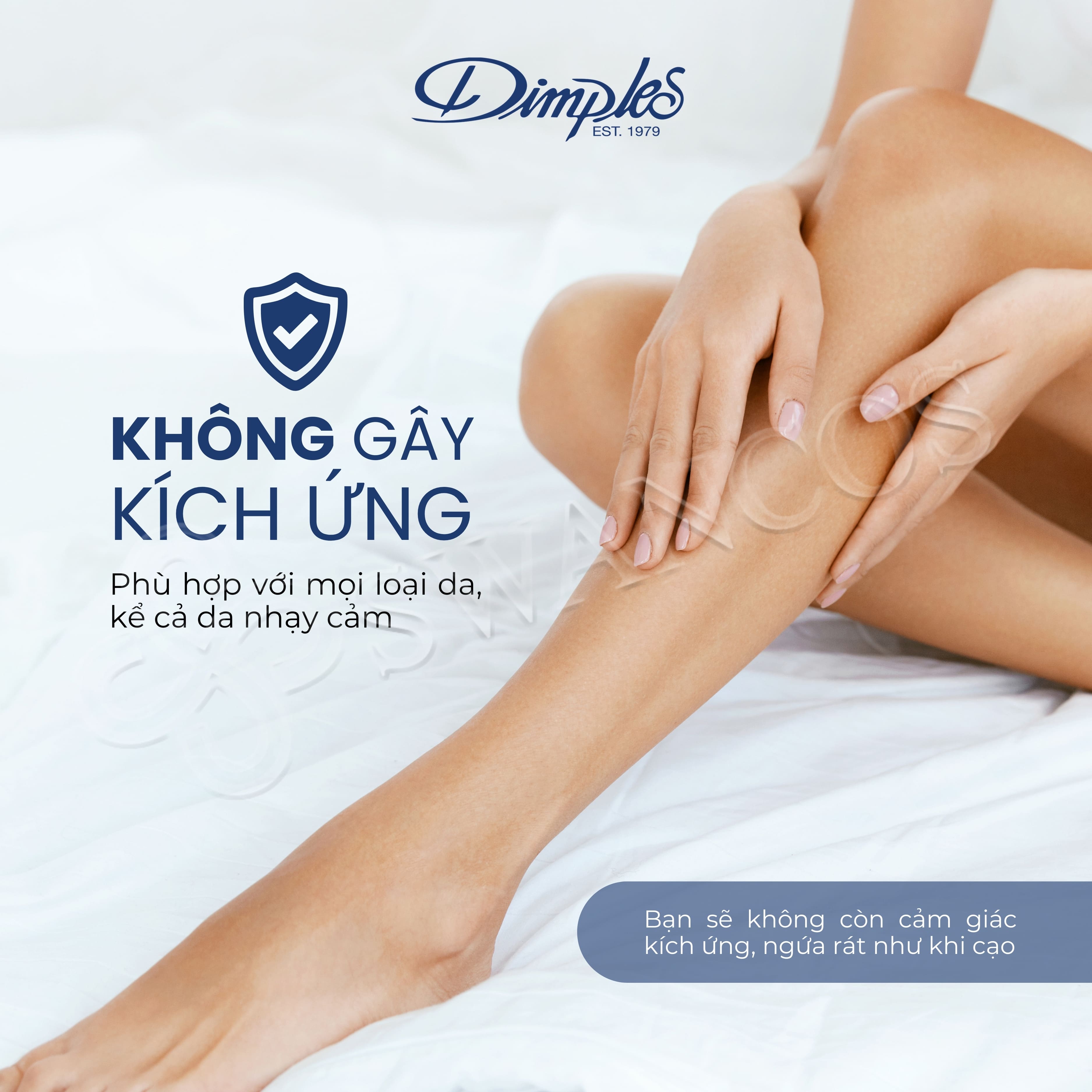 Kem tẩy lông Dimples là giải pháp lý tưởng cho những ai mong muốn làn da mịn màng, sạch sẽ, không đau rát và an toàn tuyệt đối. Sản phẩm phù hợp với nhiều nhu cầu sử dụng khác nhau và mang đến sự tự tin tuyệt đối sau mỗi lần sử dụng.
