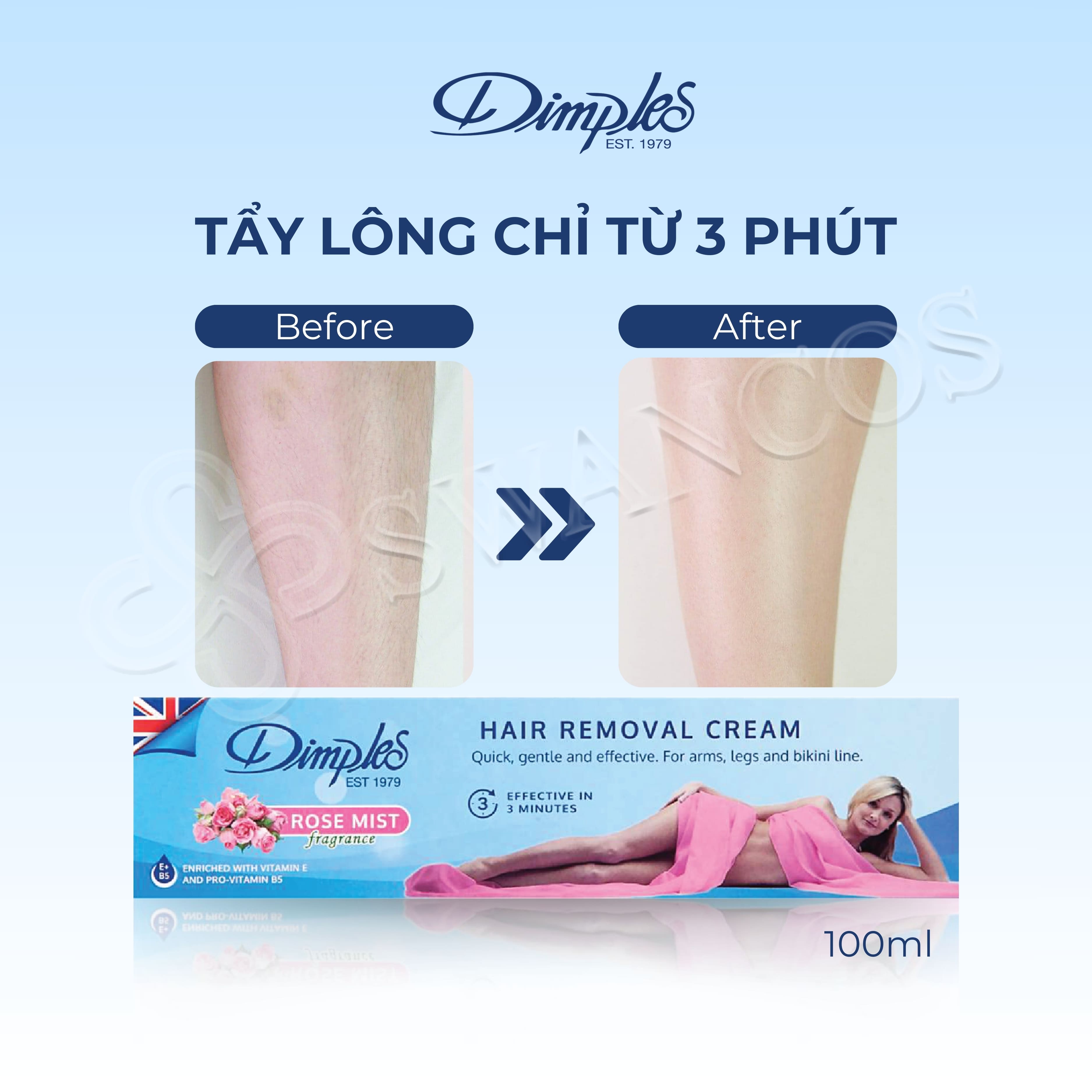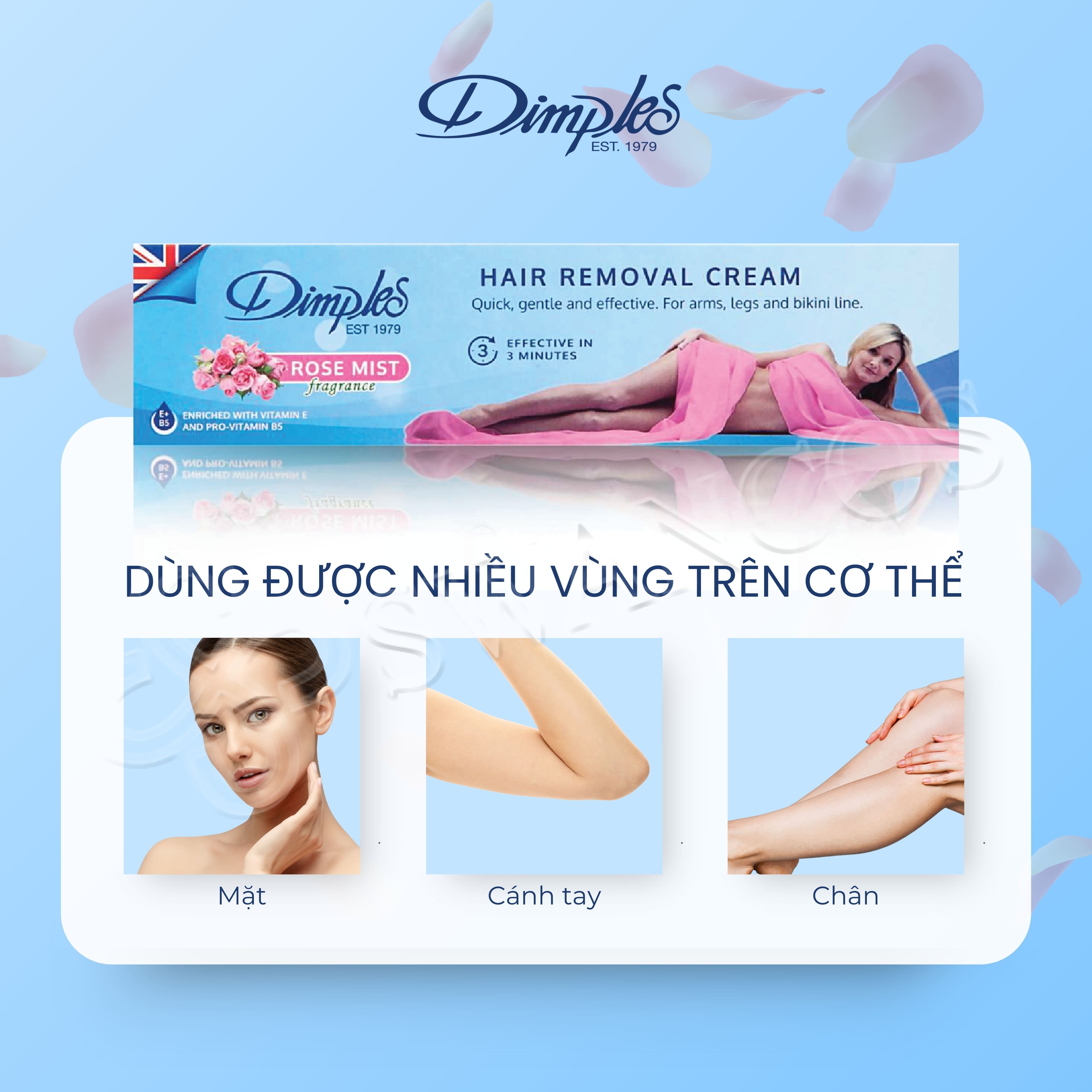 Kem Tẩy Lông Dimples Rose Mist – Hương Hoa Hồng – Hiệu Quả Trong 3 Phút – Không Đau – Nhập Khẩu Từ Anh – Dung tích 100ml