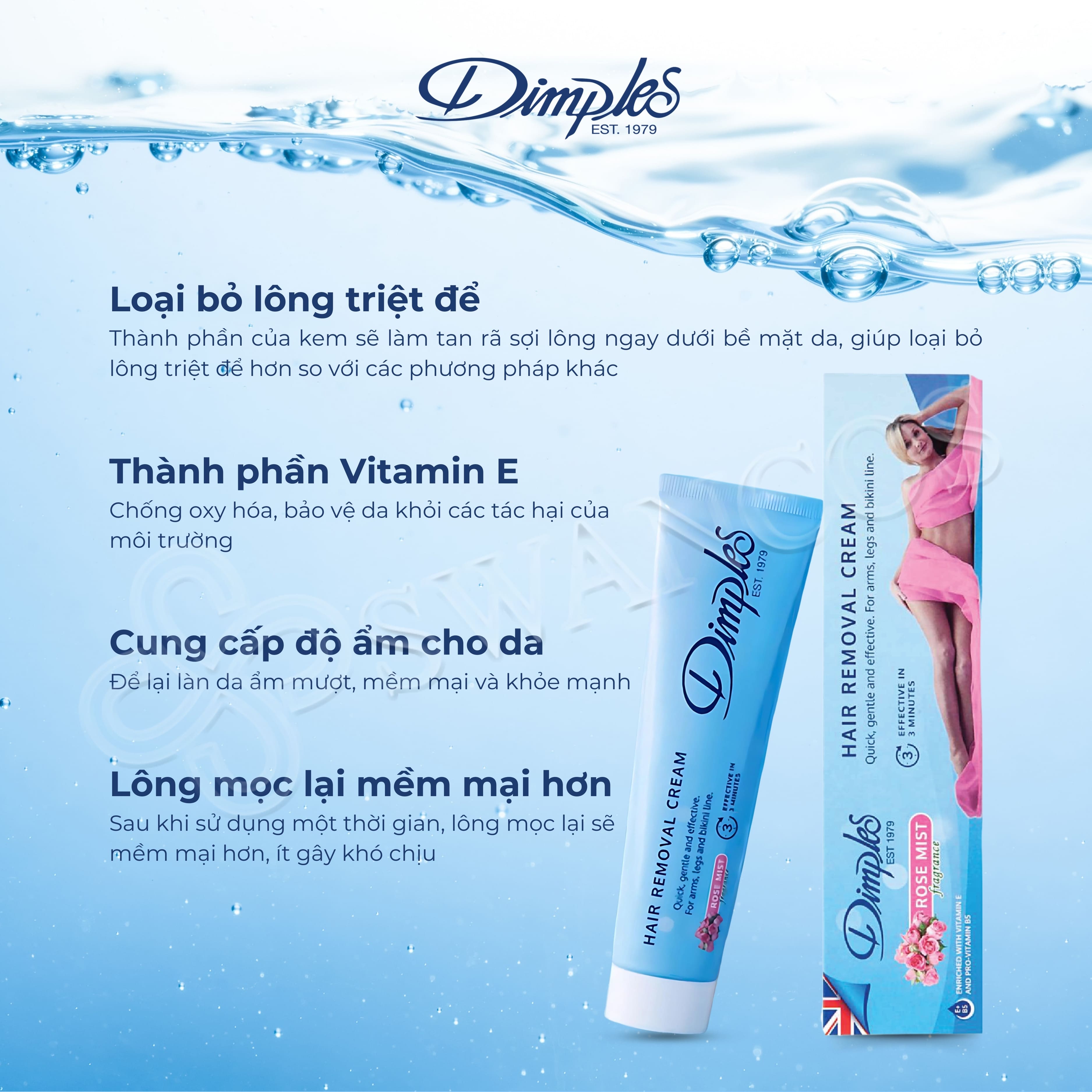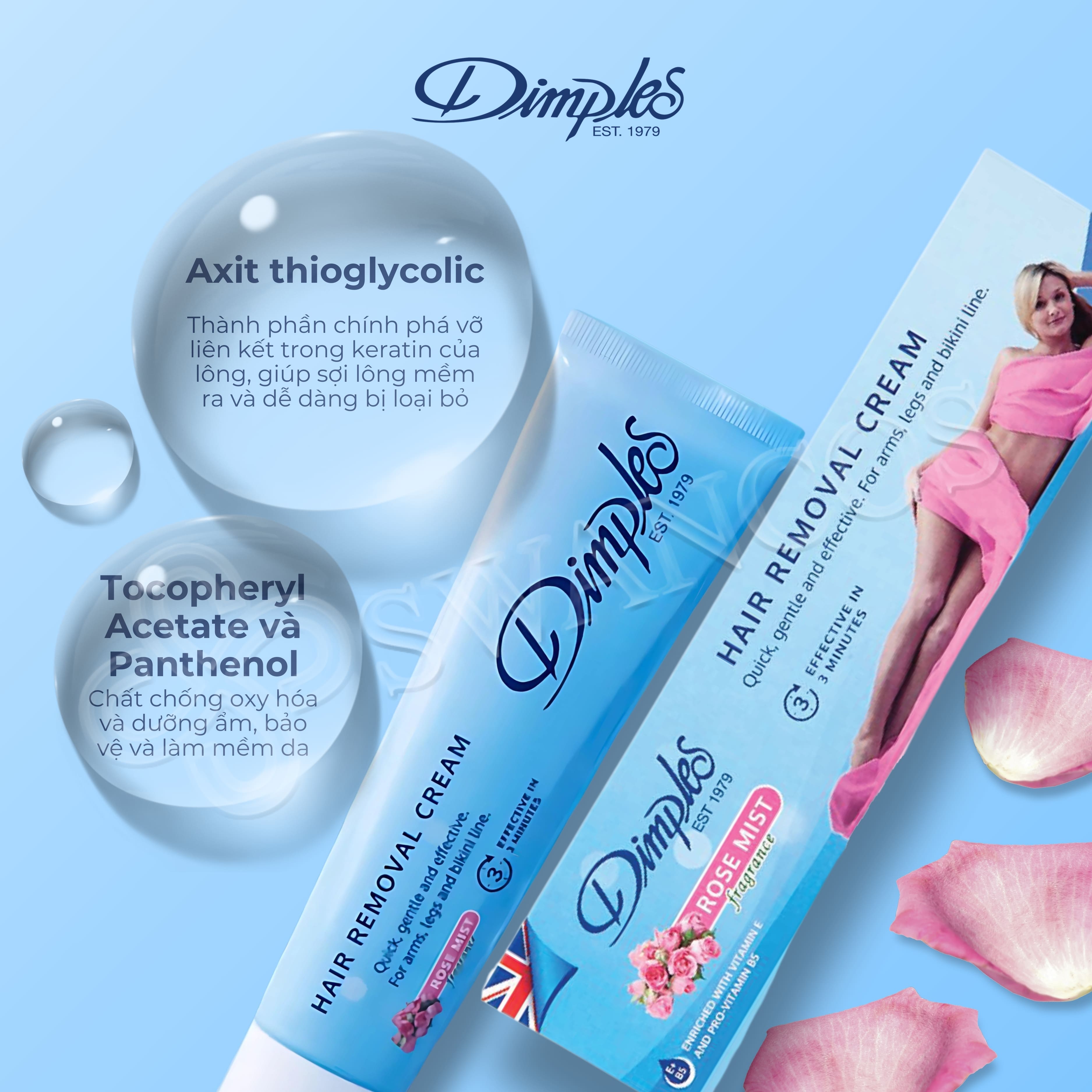 - Tên sản phẩm: Dimples Hair Removal Cream – Rose Mist