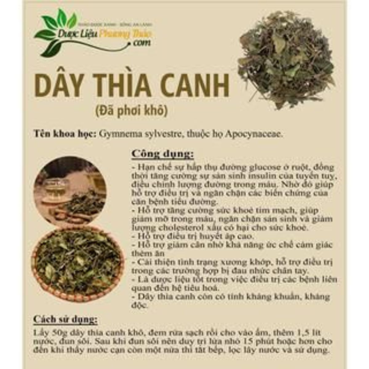 - Thông tin sản phẩm: dây thìa canh còn có tên gọi khác là dây muôi, tên khoa học Gymnema Sylvestre (Retz.), giống cây họ Thiên Lý.