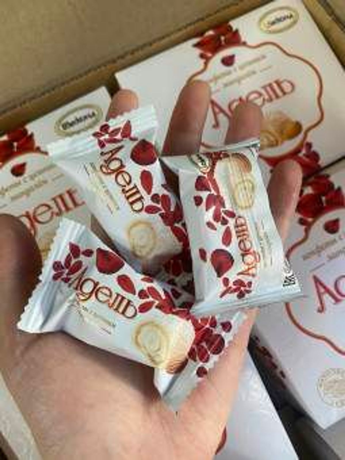 “Kẹo Akkond Adel” – lớp sôcôla được đóng gói trong từng gói riêng lẻ và được đặt trong một hộp nguyên bản với thiết kế trang nhã màu đỏ và trắng. Đây là một món quà ngọt ngào được làm sẵn có thể được tặng vào bất kỳ dịp nào cho người thân hoặc người thân yêu của bạn. Một món tráng miệng như vậy sẽ mang lại niềm vui thực sự cho tất cả mọi người.
