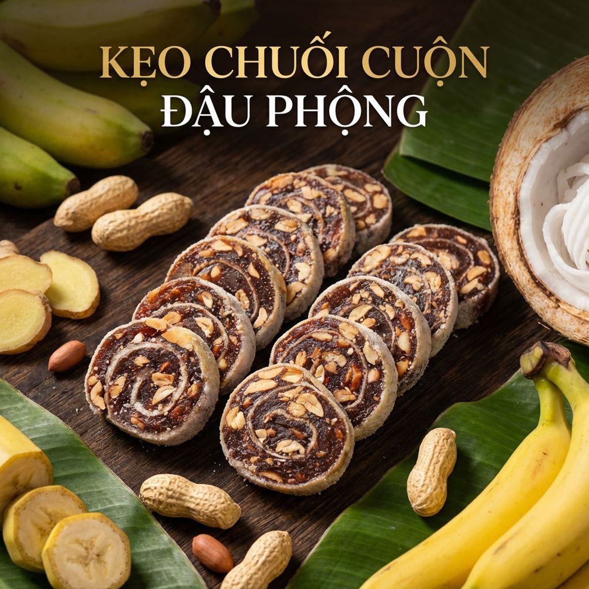 🍥 KẸO CHUỐI CUỘN ĐẬU PHỘNG – HỦ 500G 🍌