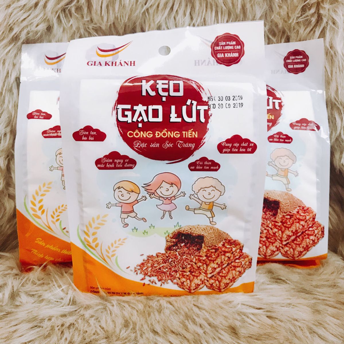 Thành phần: 85% gạo lứt, đậu phộng, mạch nha, đường.