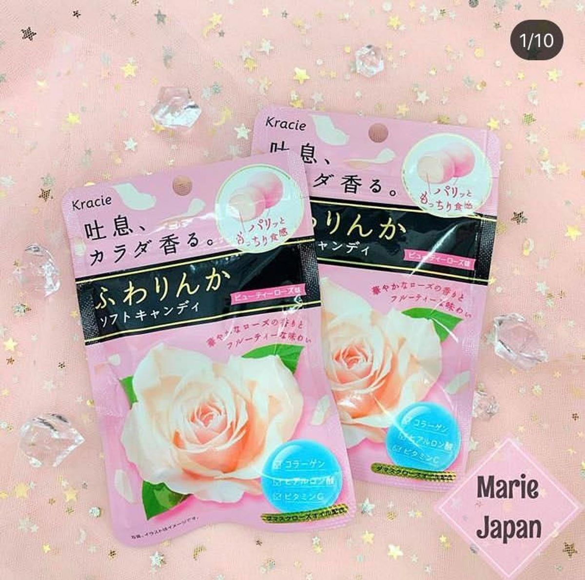 Một viên kẹo KRACIE tích tụ tương đương 100 bông hoa hồng, tạo cho cơ thể bạn lan tỏa mùi hoa hồng 1 cách tự nhiên. Công nhận 1 điều Nhật cái gì cũng có thể làm ra được cả