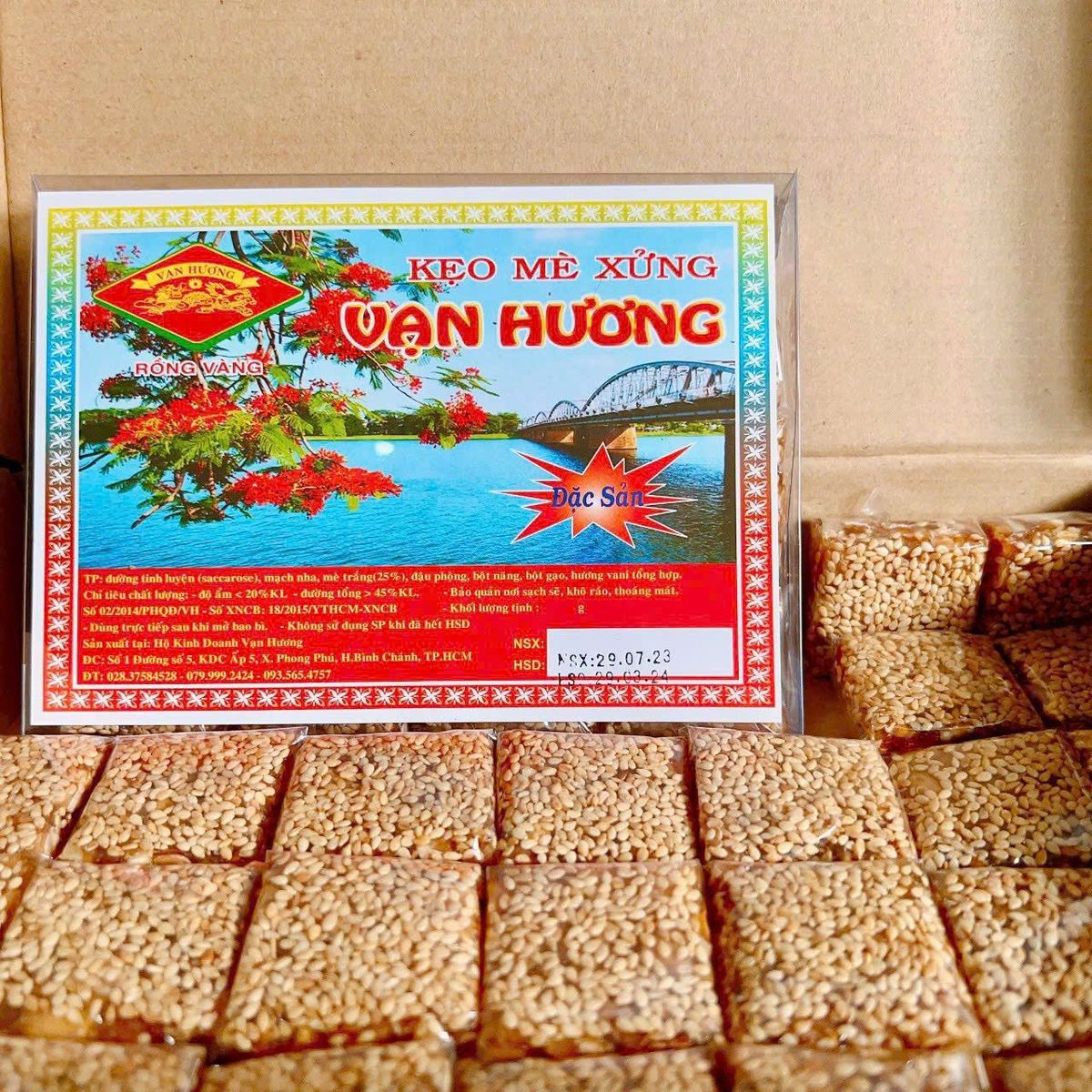 Thành phần mè xửng: đường tinh luyện, mạch nha, mè trắng, đậu phộng, bột năng, bột gạo, hương vani tổng hợp