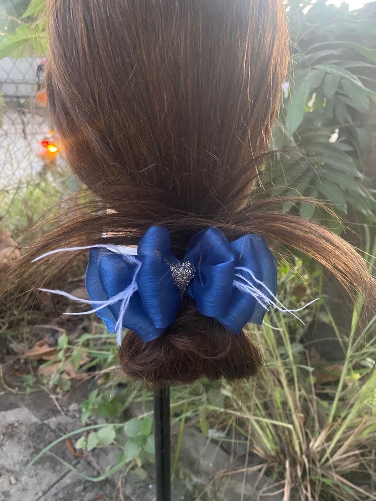 Kẹp buối tóc củ tỏi nơ phồng đính kèm lông vủ và hạt màu đen lấp lánh