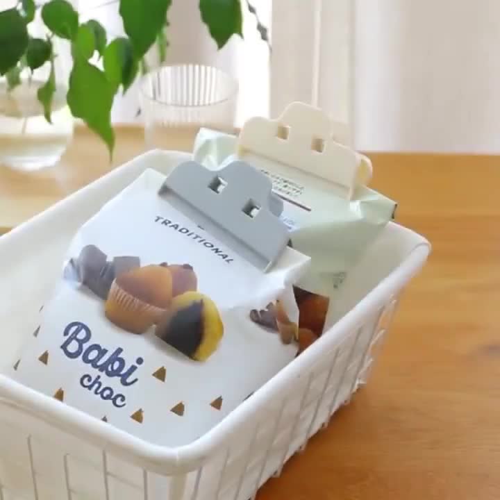 – Sau khi bóc một bọc bánh kẹo, đồ ăn nhưng không sử dụng hết chúng ta sử dụng kẹp miệng túi kẹp vào để không phải lo đồ ăn bên trong bị ẩm mốc nữa nhé