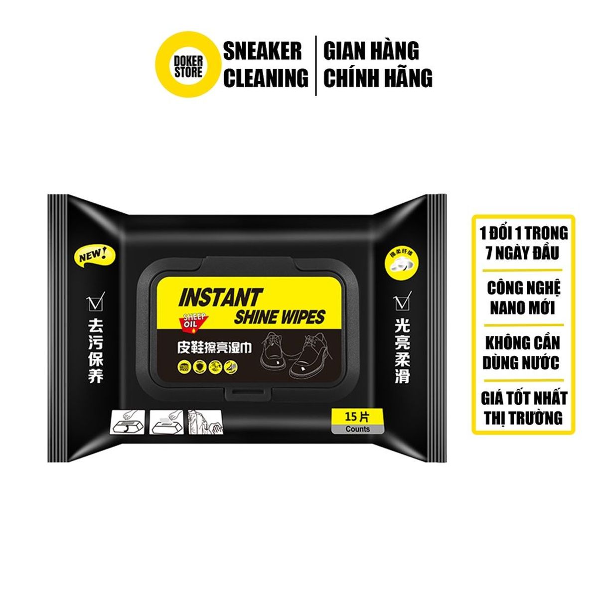 Khăn lau làm bóng giày da INSTANT SHINE WIPES đa năng 15 khăn - Doker Store