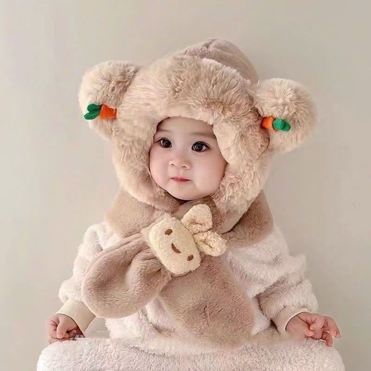 Khăn mũ lông thỏ trùm đầu hoạ tiết gấu cà rốt giá sỉ - giá bán buôn