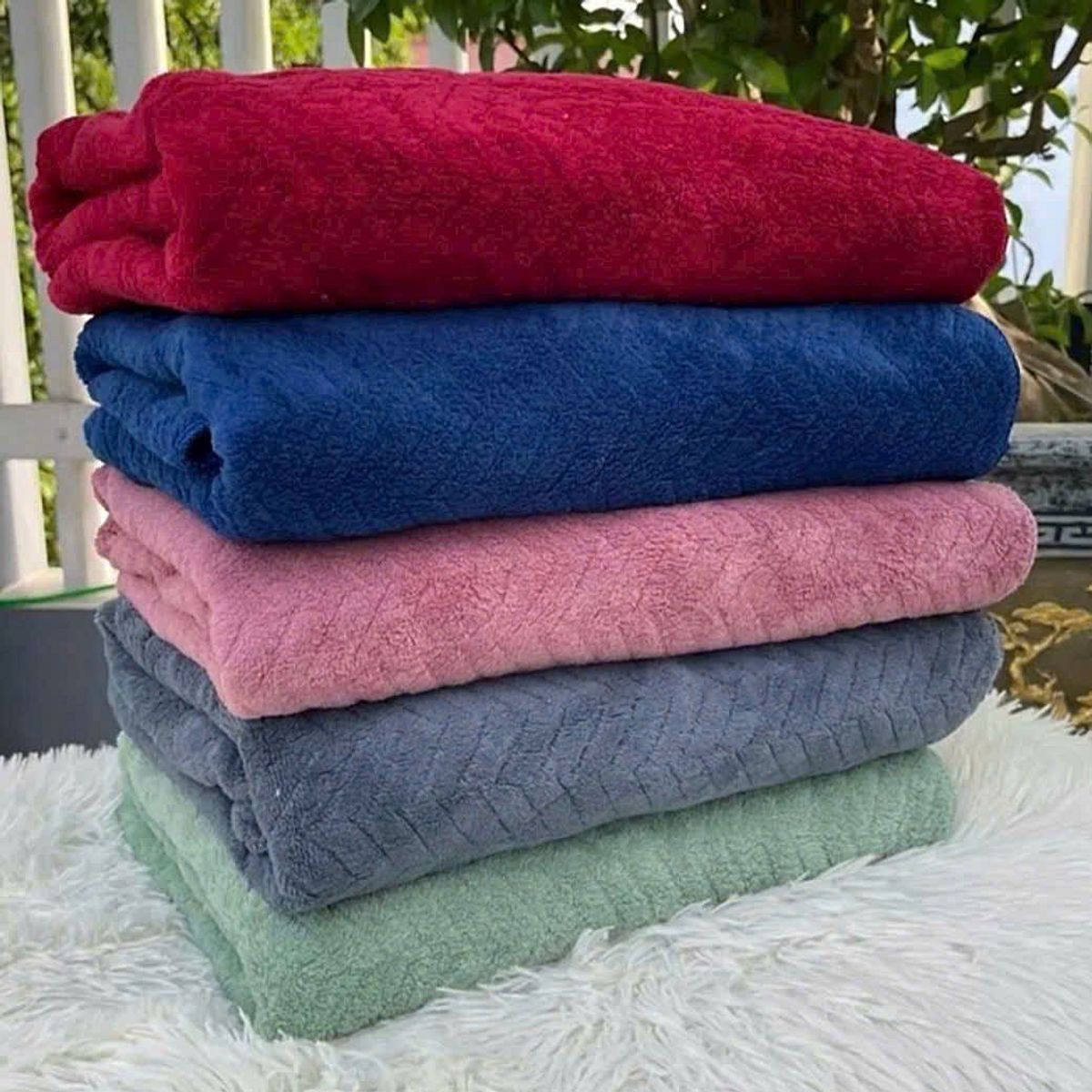 Khăn tắm lông cừu cao cấp, Hoa trám to, KT 70x140cm