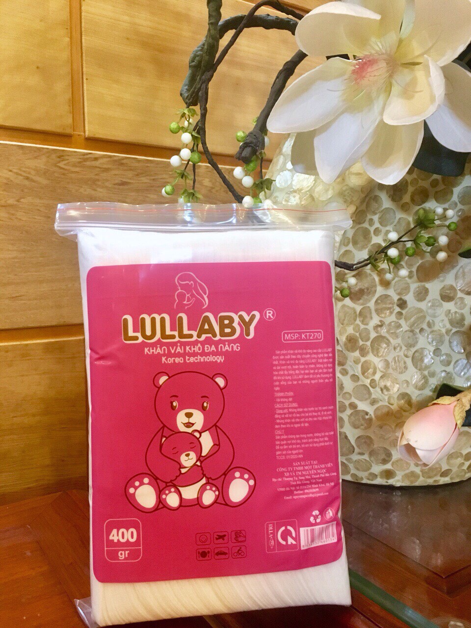 Ngoài các tính năng trên khăn vải khô Lullaby còn có những đặc điểm nổi bật khác như:1. Được làm từ vải không dệt với thành phần chính là sợi cotton 50% và sợi polyester 50%. Sản phẩm có thành phần sợi cotton cao vào loại nhất thị trường. Thường các sản phẩm khăn khô đa nawg có mức độ cotton ở nức 5% đến 25%. Tỷ lệ Cotton cao giúp khăn có khả năng thấm hút tốt hơn và giữ ẩm cũng tốt hơn. Ngoài ra sợi cotton giúp cho khăn có khẳ năng mút da tốt hơn giúp làm sạch hieeun quả hơn trong quá trình vệ sinh