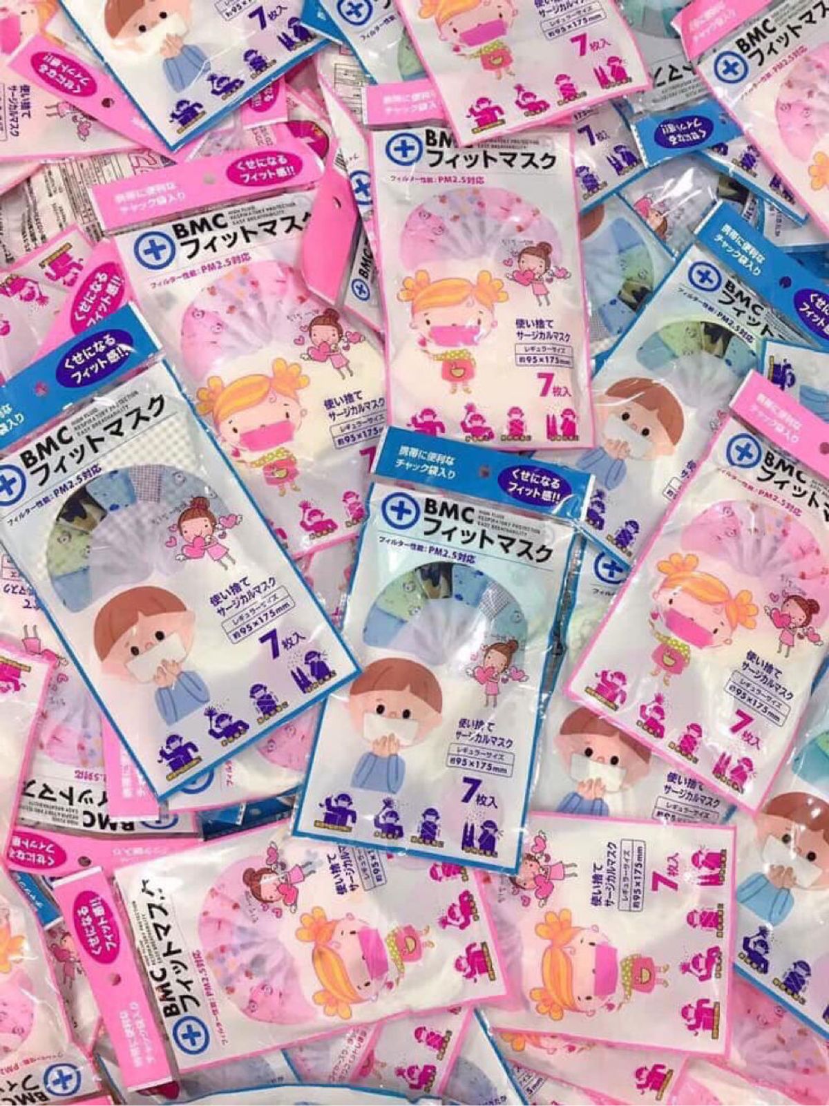 SET 7 KHẨU TRANG PM2.5 NHẬT BẢN CHO BÉ Khẩu trang y tế cho bé gói 7 chiếc MÀU XANH CHO BÉ TRAI MÀU HỒNG CHO BÉ GÁI Phải công nhận một điều là người Nhật cứ cái gì dính đến cho bé là cực kì nghiêm ngặt và mẫu mã rất đáng yêu ạ ! Chất liệu vải Cotton Không Dệt Non-woven Cloth bảo vệ bé cực hiệu quả khỏi bụi bẩn và vi khuẩn, chất liệu vải không dệt nên không có bụi vải gây tác dụng ngược cho hô hấp. Lọc bụi PM2.5 siêu nhỏ bảo vệ sức khỏe bé. Ôm sát lấy khuôn mặt, nhưng rất dễ thở không làm bé khó chịu. Lớp trong cùng tiếp xúc với mặt bé rất mềm mượt không làm tổn thương lớp da mỏng manh nhạy cảm, 2 lớp ngoài chắc chắn, không dễ rách. Dây chun đàn hồi mềm không làm đau tai bé, loại dây bền đẹp không dễ bị đứt. Có thể dùng cho bé từ 1-7 tuổi có thể buộc ngắn lại cho vừa với mặt con -------
