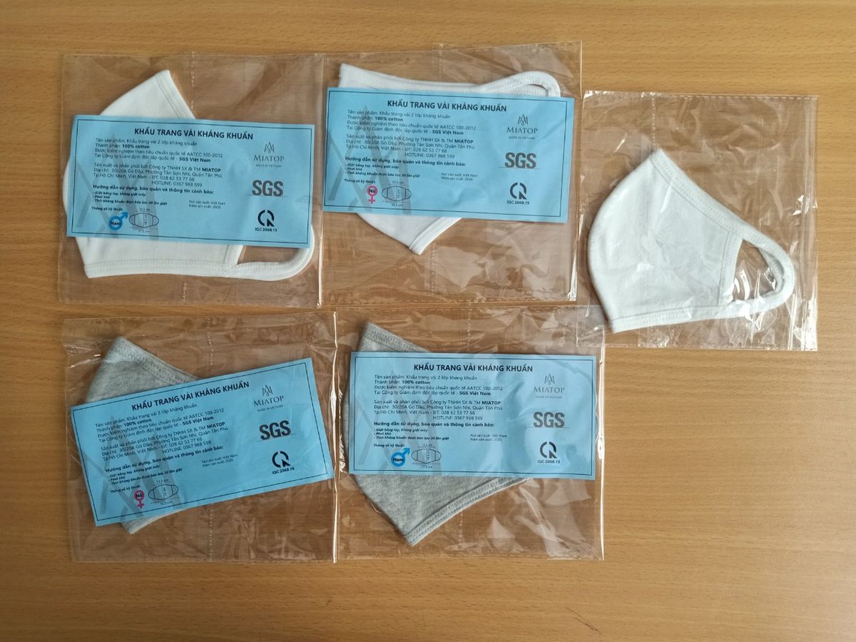 Công ty mình nhận sản trang vải kháng khuẩn đạt tiêu chuẩn quốc tế SGS nhé mọi người. Giá công ty: trên 1000 sp: 5500₫. Ngoài ra nếu số lượng nhỏ, khách hàng sẽ tự thanh toán tiền ship ạ. Địa chỉ công ty TNHH MIATOP: 30/20 A Gò Dầu, phường Tân Sơn Nhì, Quận Tân Phú, TPHCM.