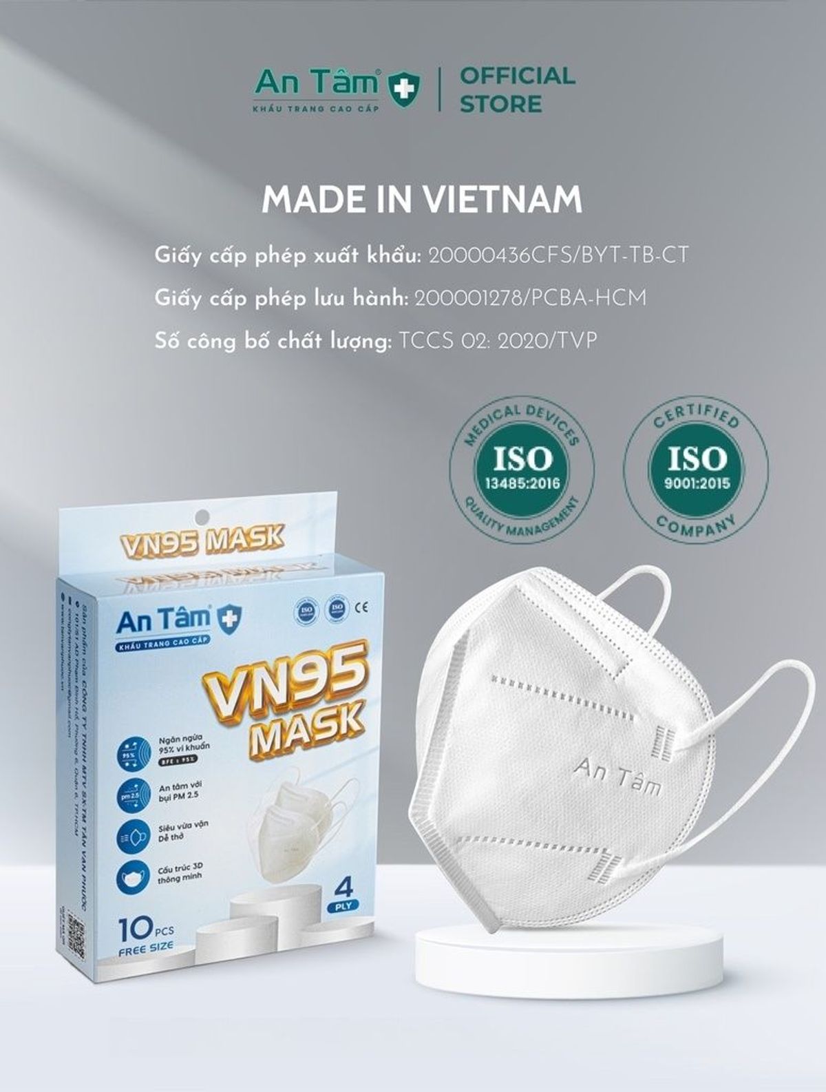 - Sản phẩm đạt đầy đủ các tiêu chuẩn: ISO 13485:2016, TCVN 8389-1/2020