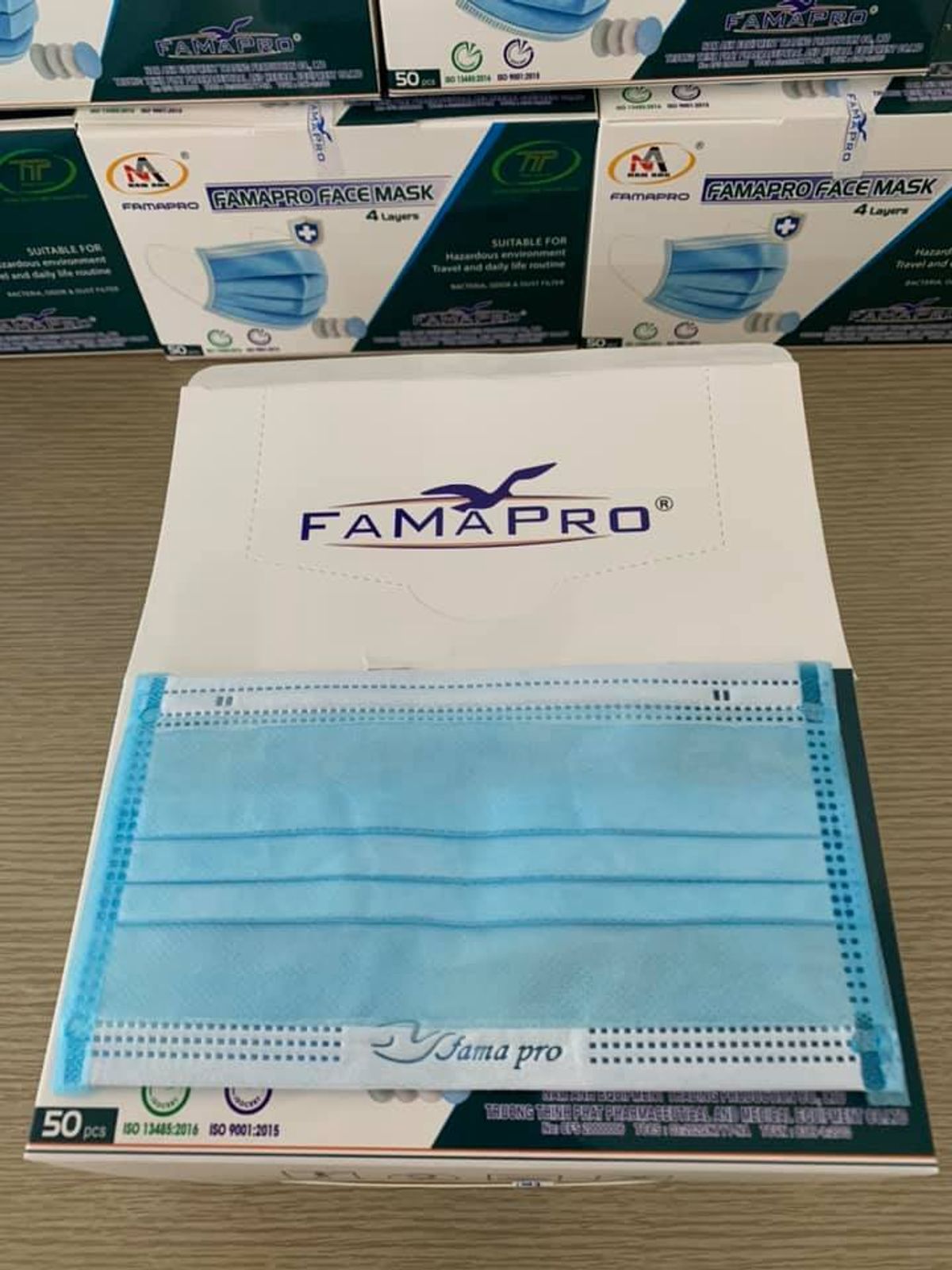 Hộp Khẩu Trang Y Tế Gồm 50 Chiếc 4 Lớp Vải Kháng Khuẩn + Giấy Kháng Khuẩn 99,99% Định Lượng Chuẩn Quốc Tế, Luôn dầy hơn hàng nội địa 5gsm + Test Report Hợp Pháp, Đầy Đủ Thông Số 4 Lớp Chỉ Có Tại FAMAPRO - 1st Layer: Non-woven fabric 2s (35gsm) - 2nd Layer: Non-woven fabric (25gsm) - 3rd Layer: Melt brown fabric (25gsm) - 4th Layer: Non-woven fabric 2s (35gsm) Tiêu Chuẩn ASTM Level 1 - Xuất Khẩu Mỹ