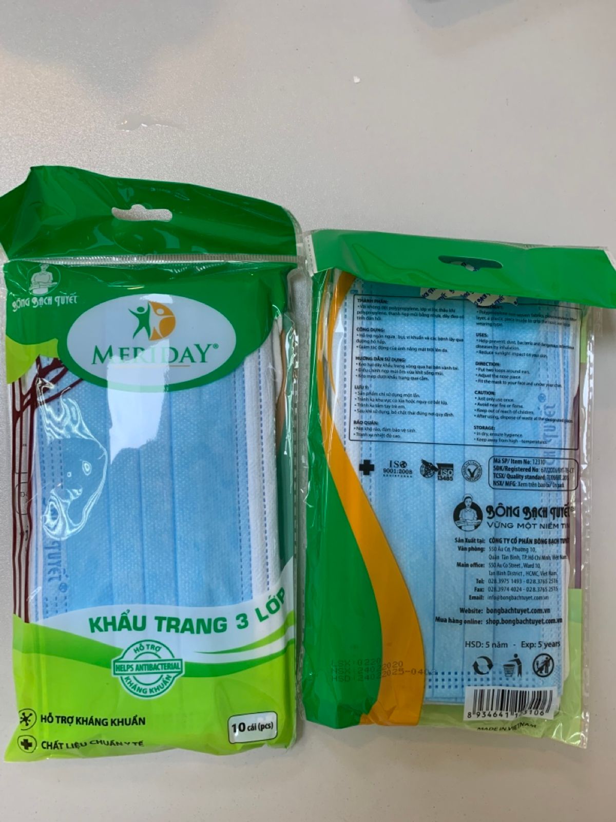 Khẩu trang y tế Meriday Bạch Tuyết 3 lớp màu xanh [Túi 10 cái]
