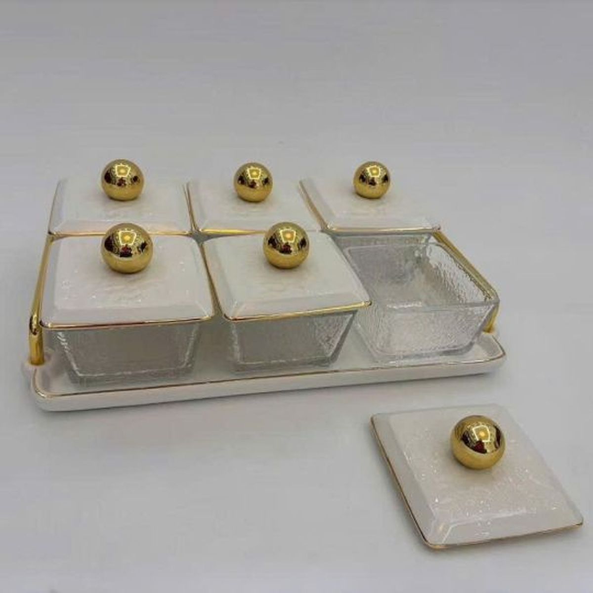 + Đặc biệt vào những ngày Tết trên bàn lại càng không thể thiếu 1 khay bánh mứt nữa ạ, nhưng riêng về khay đựng này thay vì hết những ngày Tết chúng ta cất vào thì mẫu này chúng ta còn có thể sử dụng được để đựng trái cây ăn hay lấy riêng từng hủ đựng đựng vật dụng hay tiêu muối trong bếp ạ.