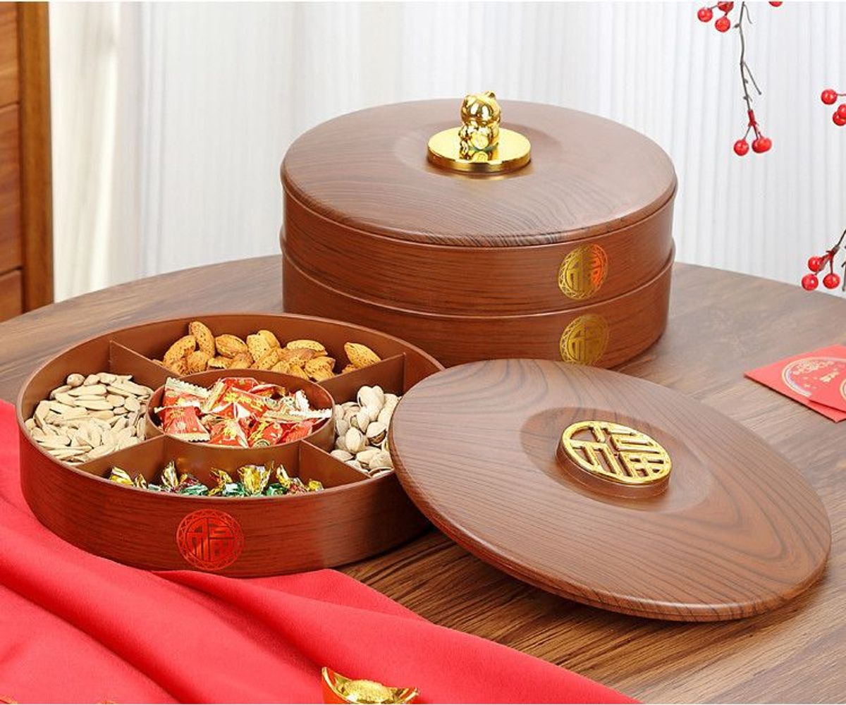 + Đặc biệt vào những ngày Tết trên bàn lại càng không thể thiếu 1 khay bánh mứt nữa ạ, nhưng riêng về khay đựng này thay vì hết những ngày Tết chúng ta cất vào thì mẫu này chúng ta còn có thể sử dụng được để đựng trái cây ăn hay lấy riêng từng hủ đựng đựng vật dụng hay tiêu muối trong bếp ạ.
