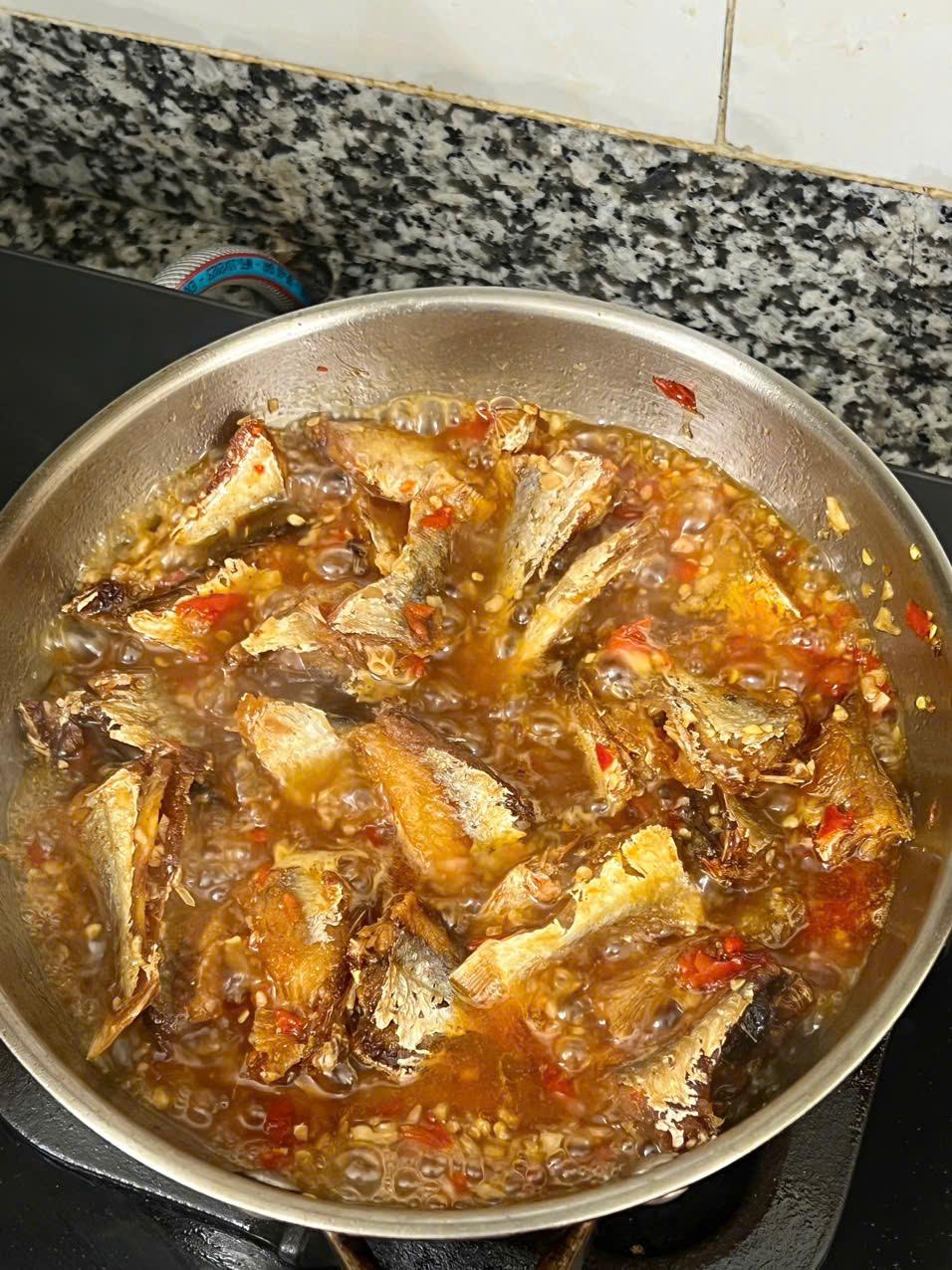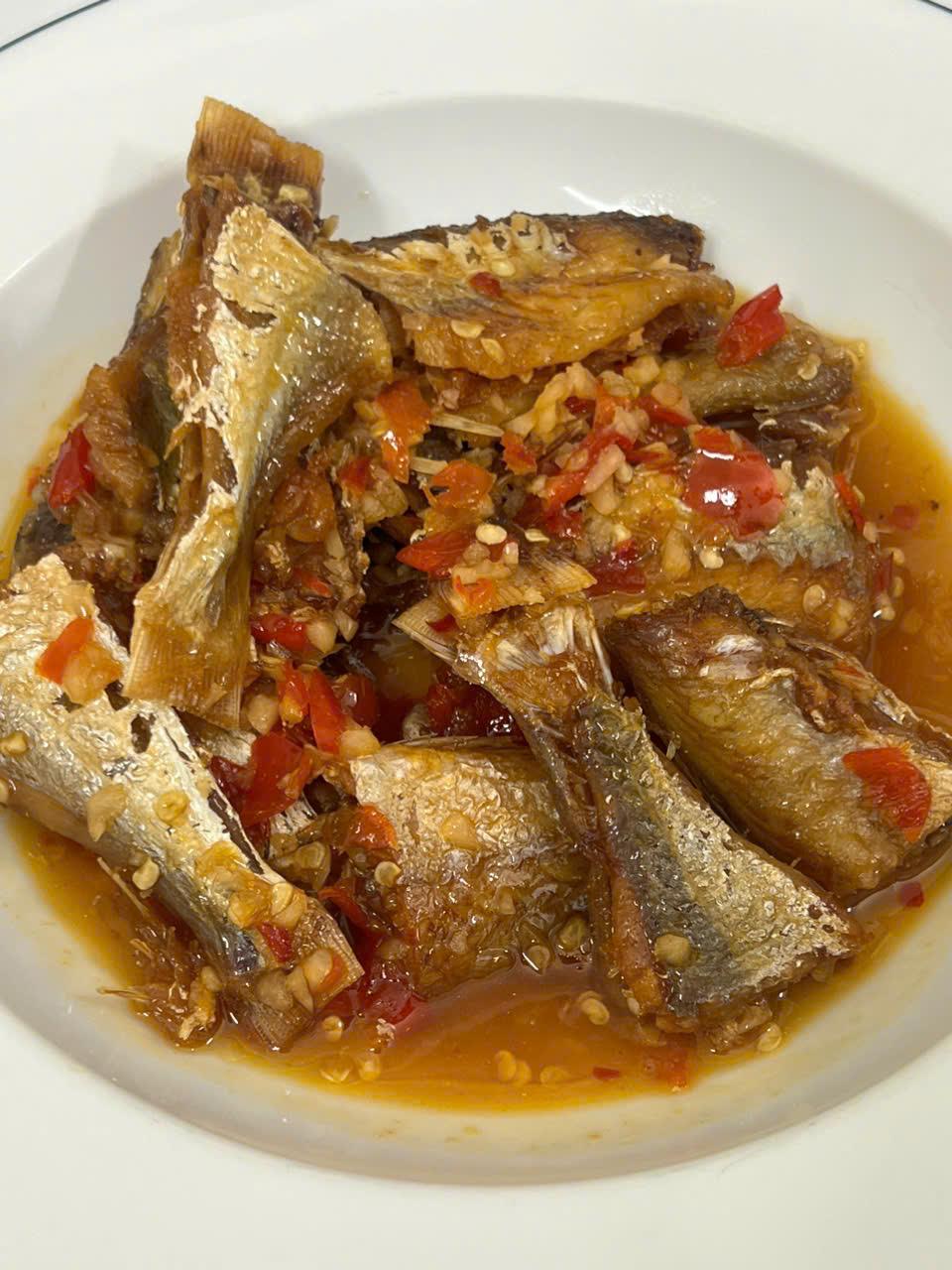 KHÔ CÁ HỒNG ( CÁ GÀ LỘT) RIM TỎI ỚT: cay mặn vừa ăn, thích hợp dùng với: