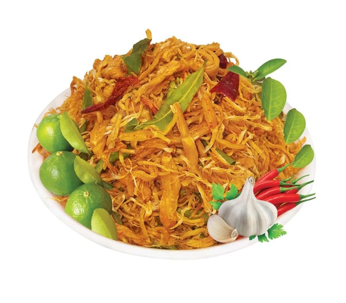 Thành phần: thịt gà, nước mắm, đường, muối, ớt, lá chanh, chất điều vị 621